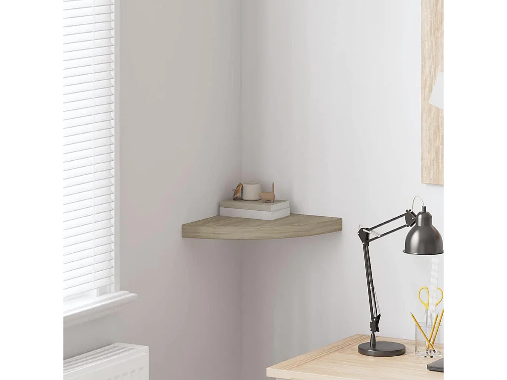 Étagère d'angle flottante chêne 35x35x3,8 cm MDF