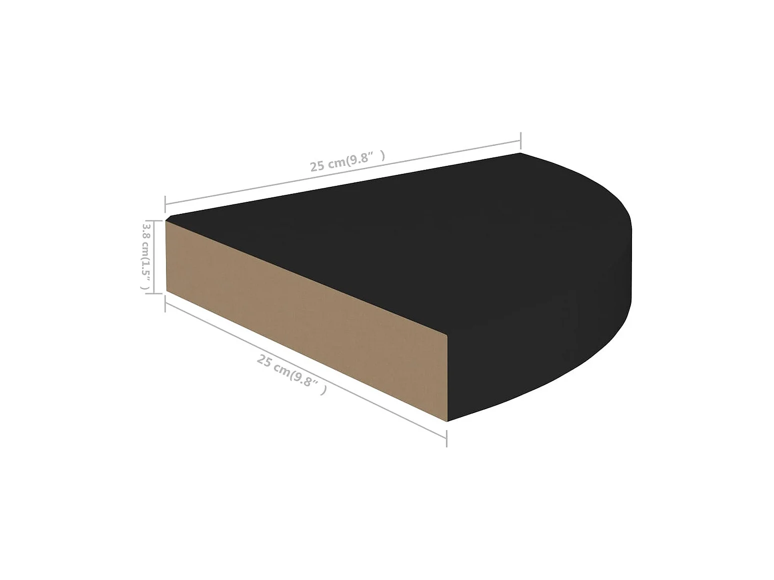 Étagère d'angle flottante noir 25x25x3,8 cm MDF