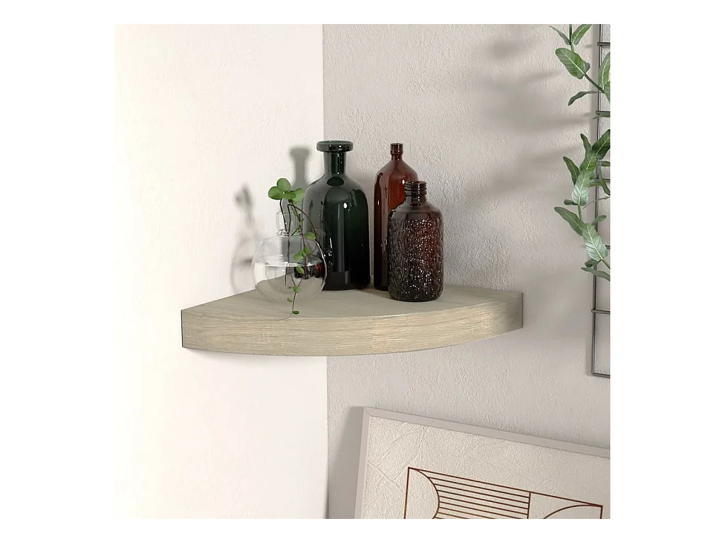 Étagère d'angle murale chêne 25x25x3,8 cm MDF OFR75014 BonneVie Meuble