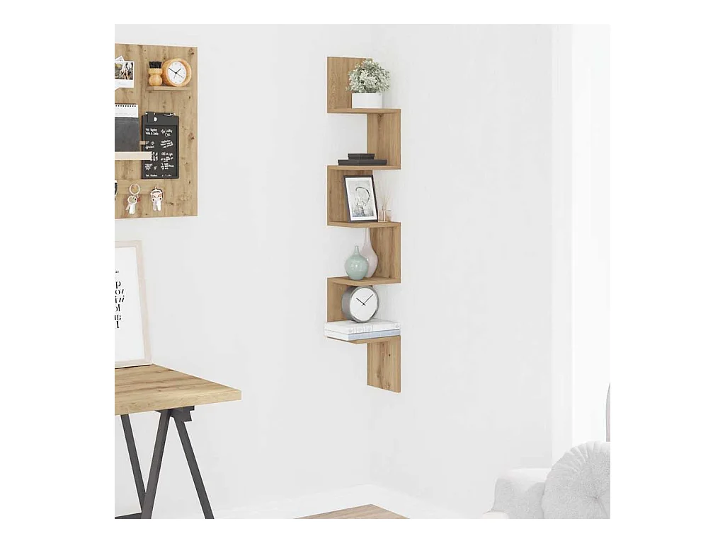 Étagère d'angle murale chêne artisanal 20x20x127,5 cm