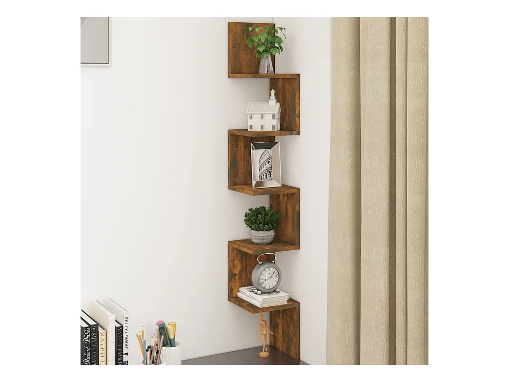 Étagère d'angle murale Chêne fumé 20x20x127,5cm Bois ingénierie OFR46345 BonneVie Meuble