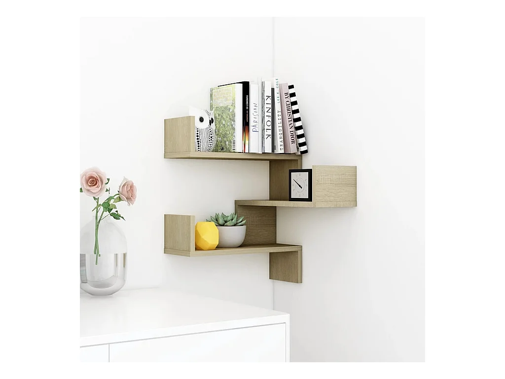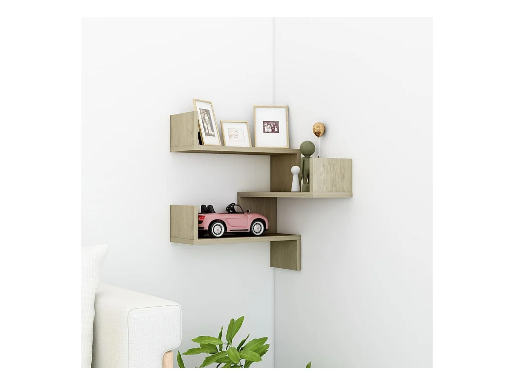 Étagères murales d'angle 2 pcs Chêne sonoma Bois d’ingénierie