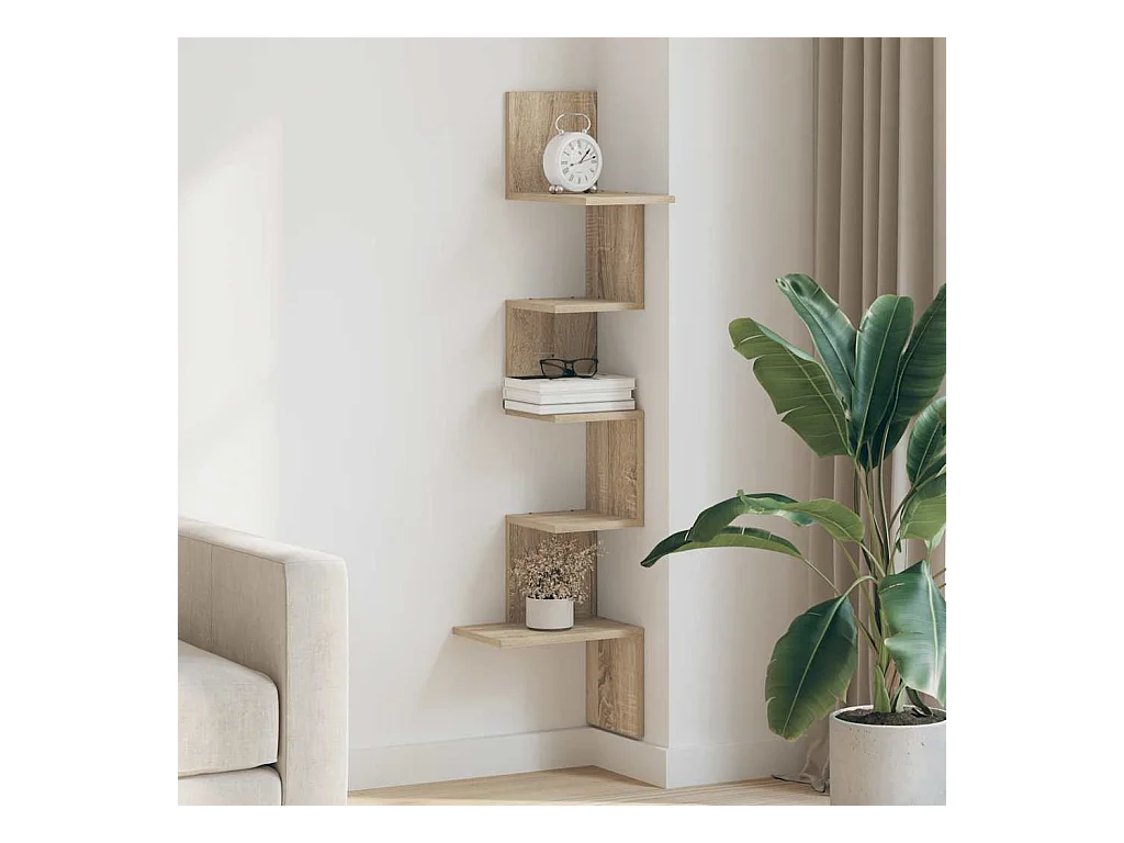 Étagère d'angle murale chêne sonoma bois d'ingénierie