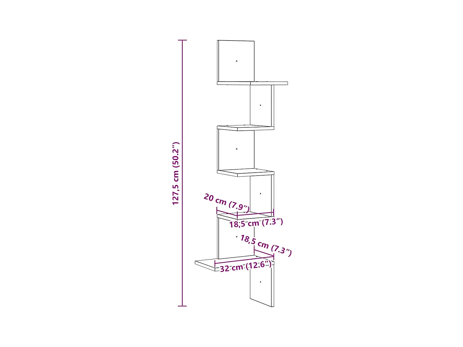 Étagère d'angle murale Chêne fumé 20x20x127,5cm Bois ingénierie