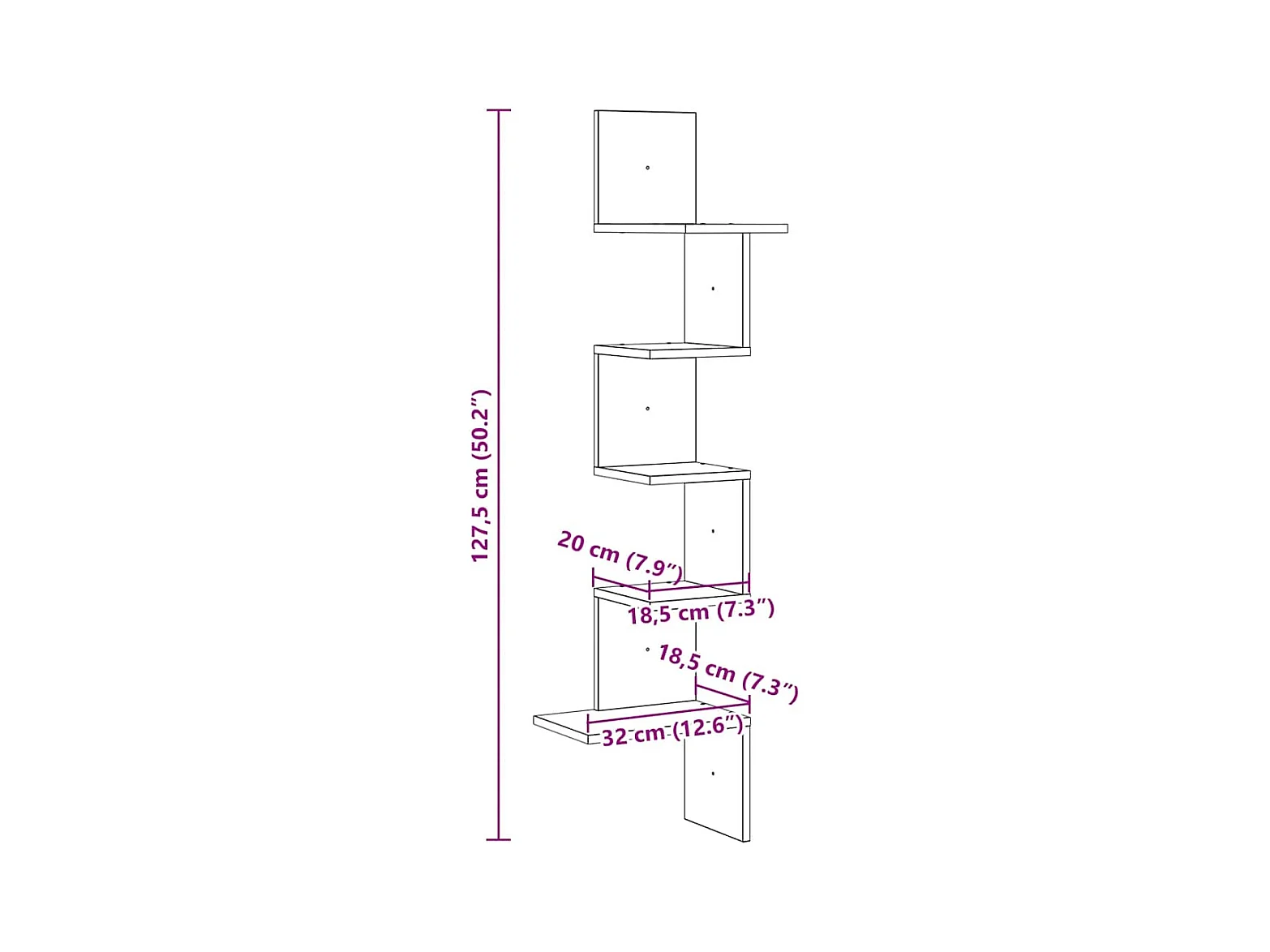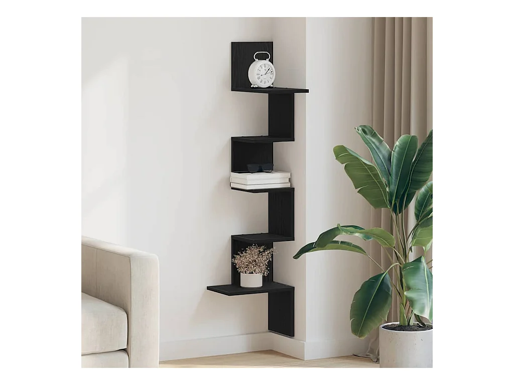 Étagère d'angle murale Noir 20x20x127,5 cm Bois d’ingénierie
