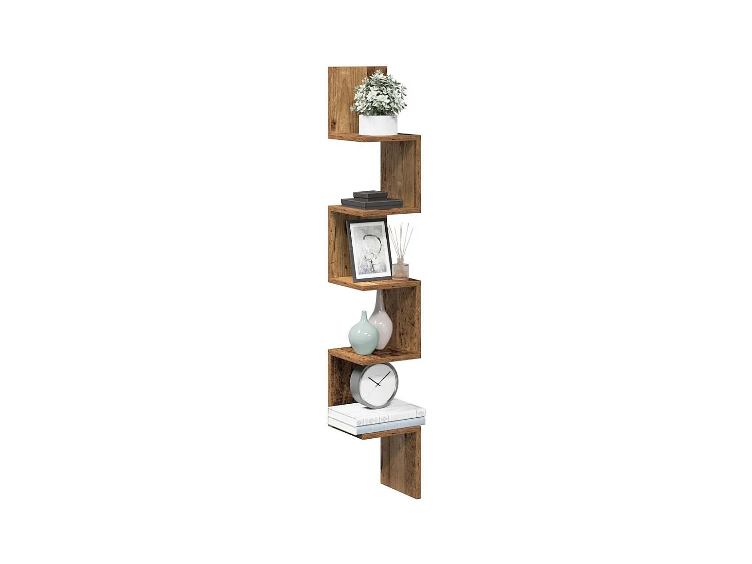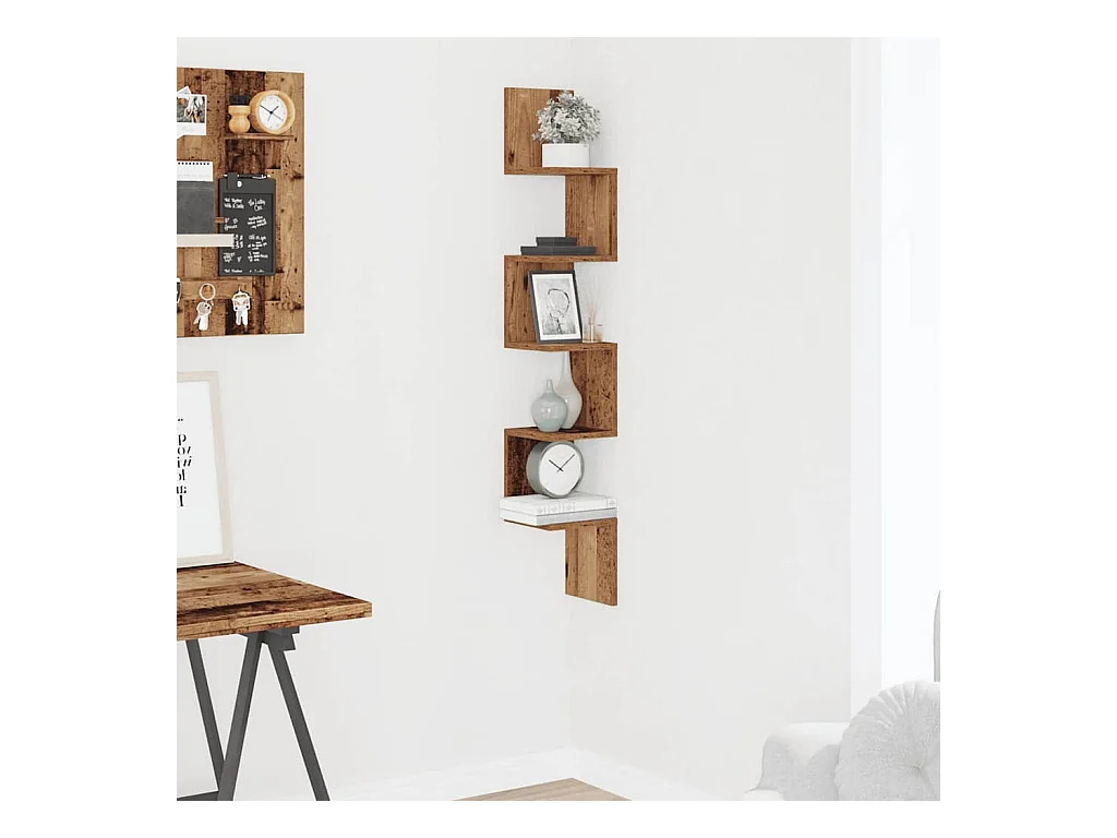 Étagère d'angle murale vieux bois 32x32x127,5cm bois ingénierie
