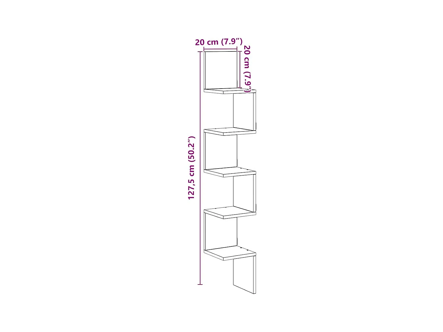 Étagère d'angle murale chêne artisanal 20x20x127,5 cm