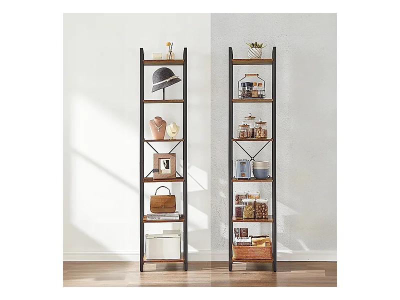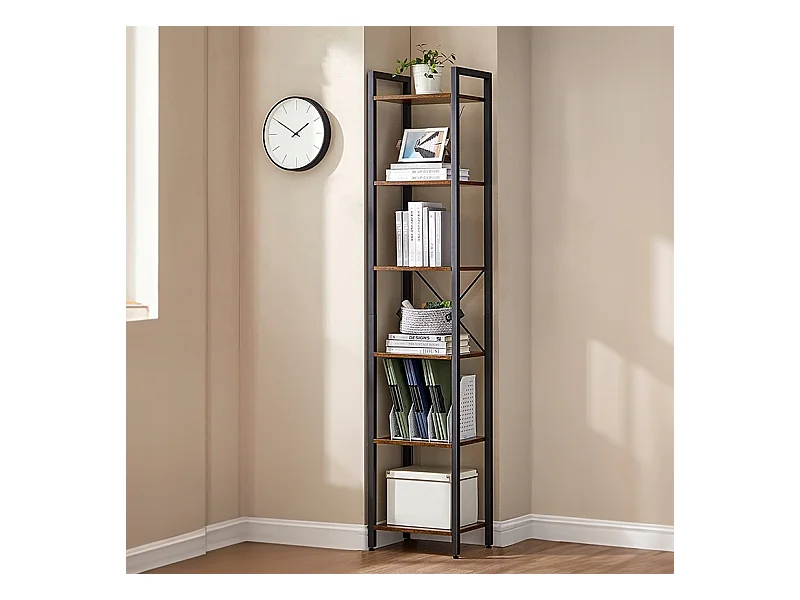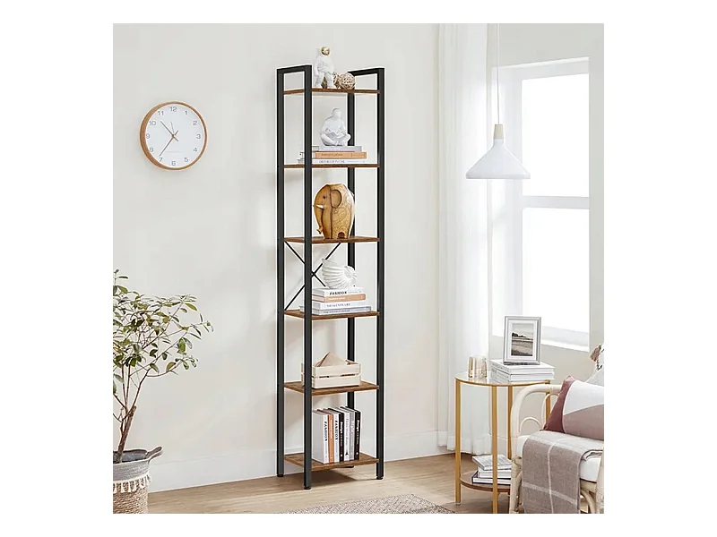ÉTAGÈRE À LIVRES HAUTE ARMOIRE DE SALON INDUSTRIELLE RUSTIQUE LOFT BRUN