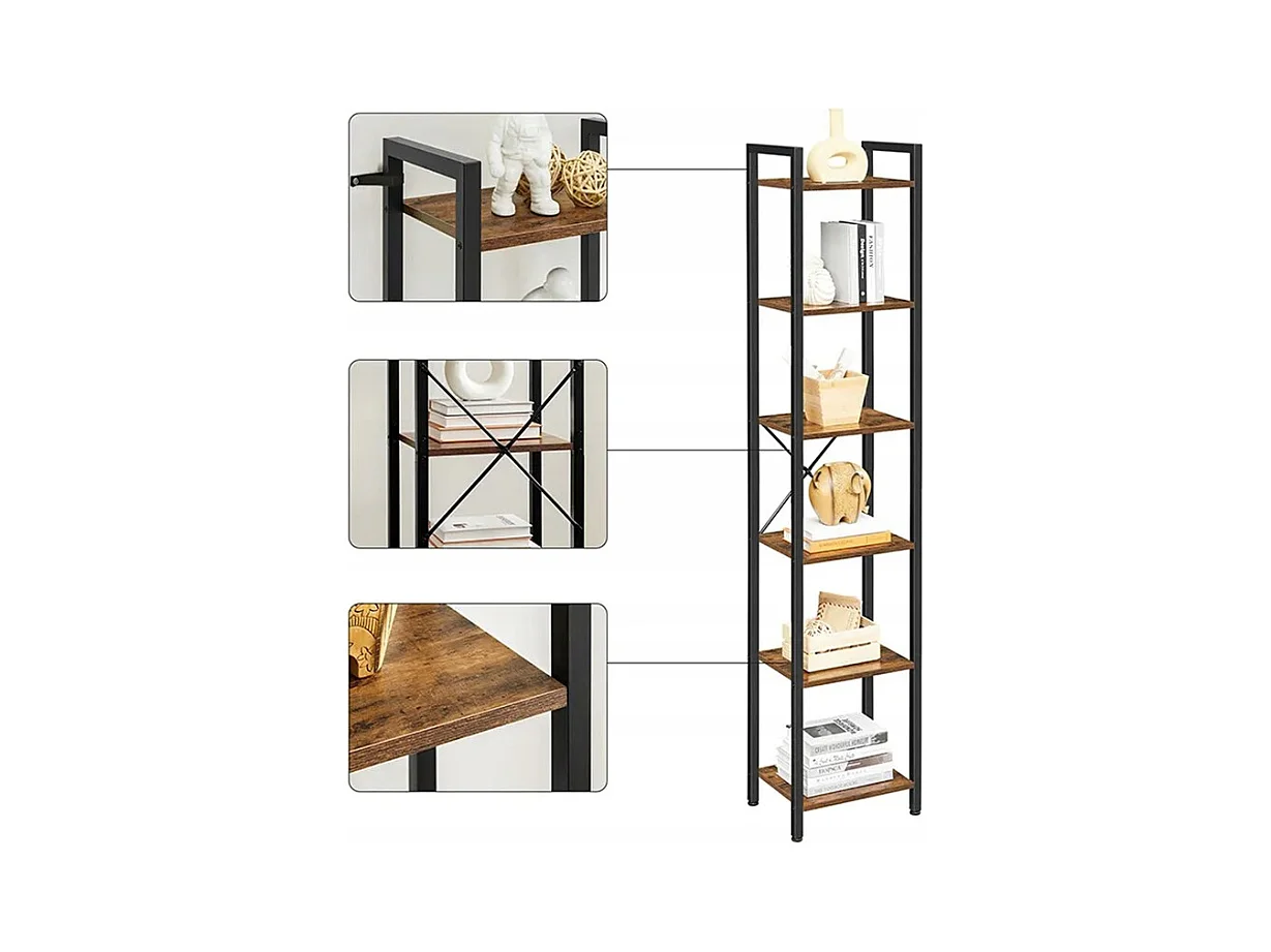 ÉTAGÈRE INDUSTRIELLE SUR PIED ÉTAGÈRE À LIVRES LOFT 190 CM CADRE MÉTALLIQUE
