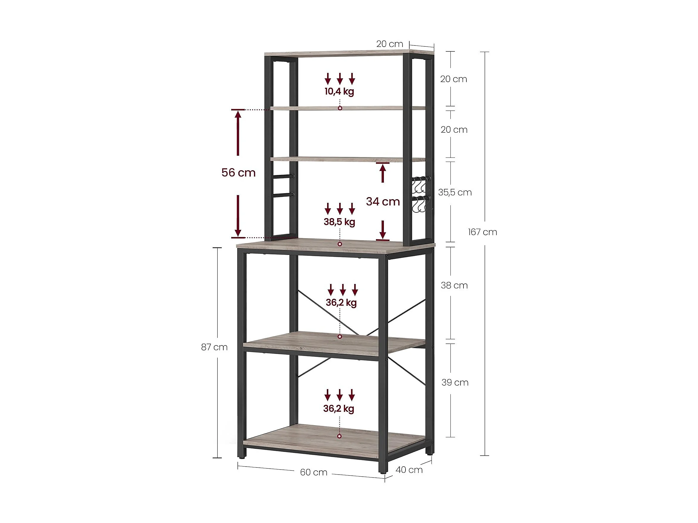 Étagère de cuisine 40x60x167 cm greige moucheté encre noire