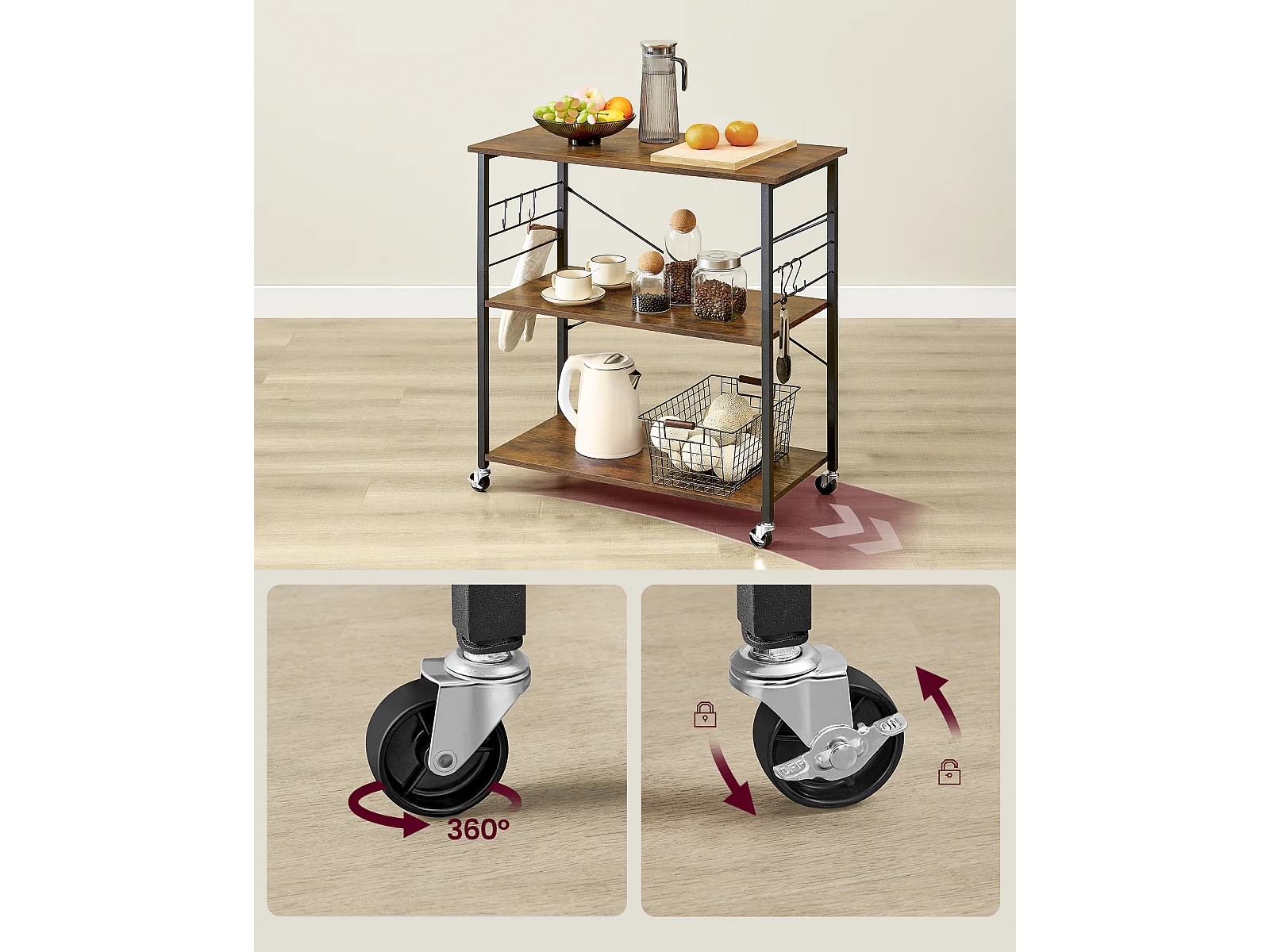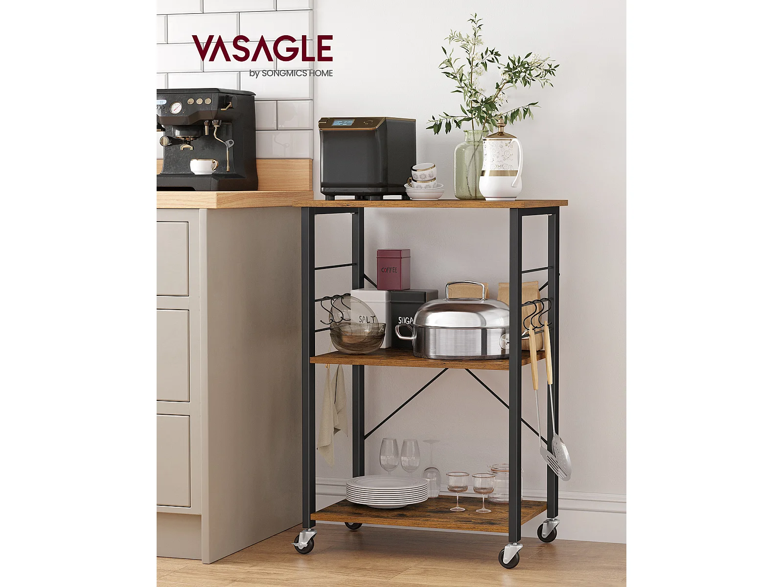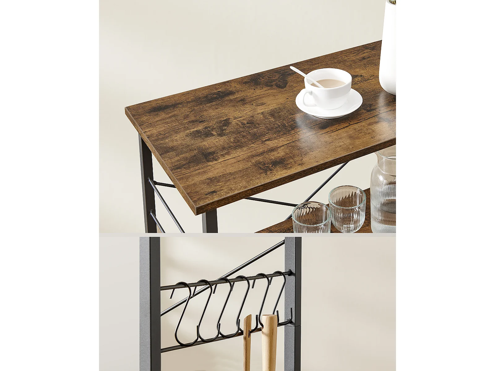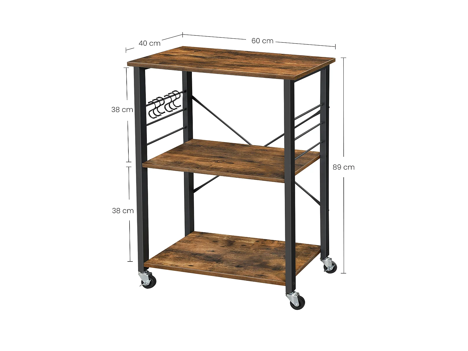 Étagère de cuisine 60x40x84 cm noir brun rustique kks60xv1