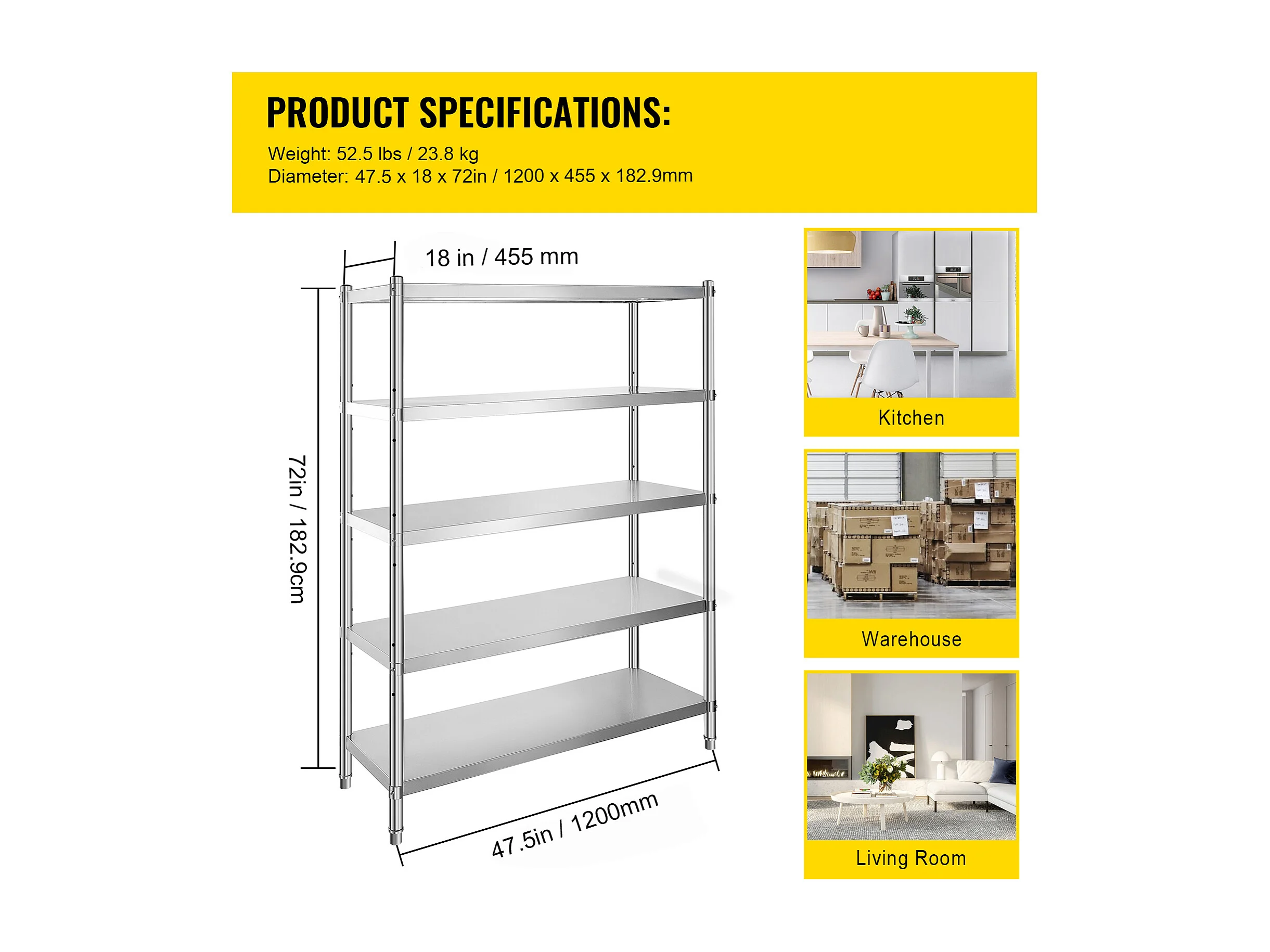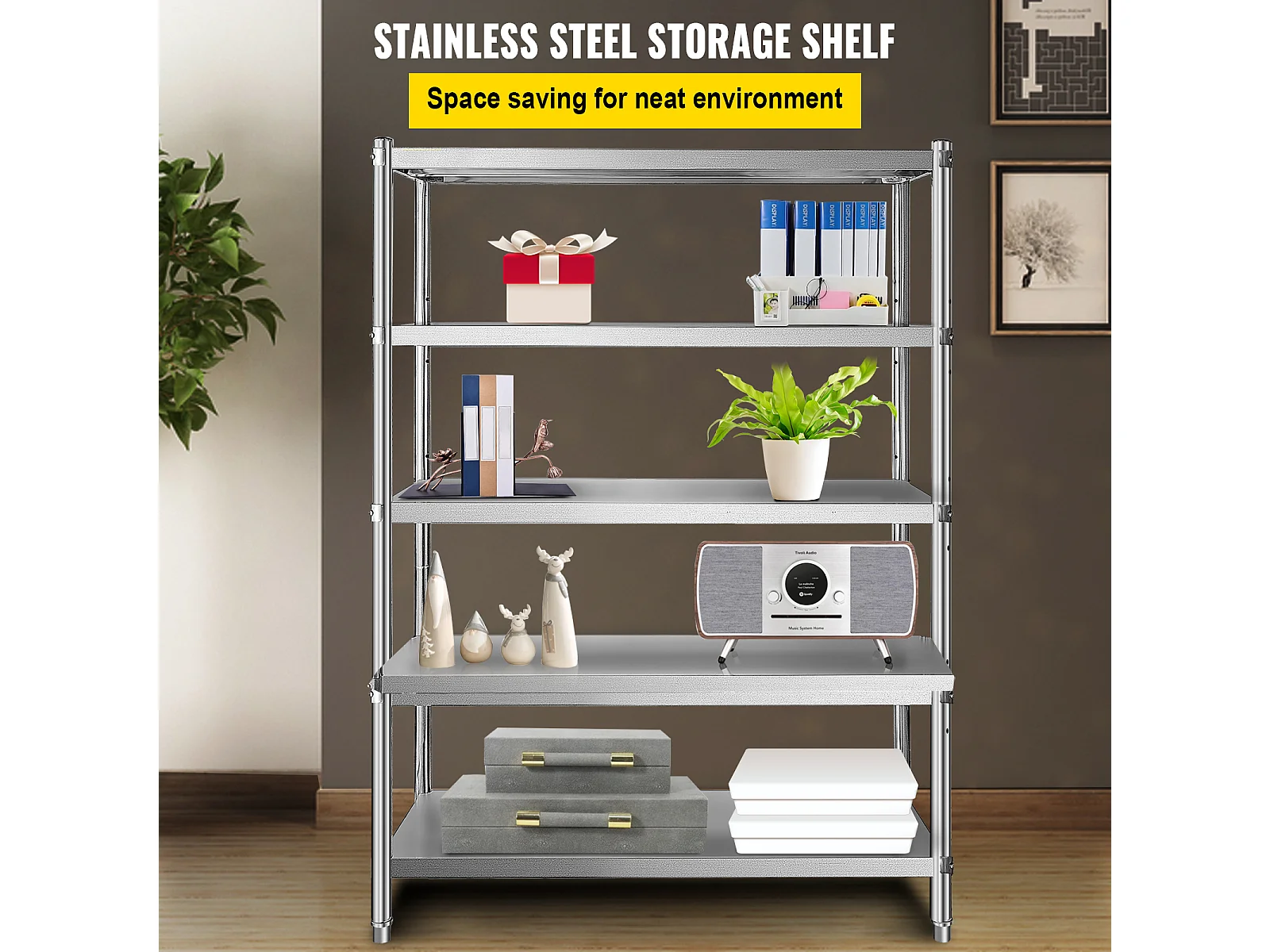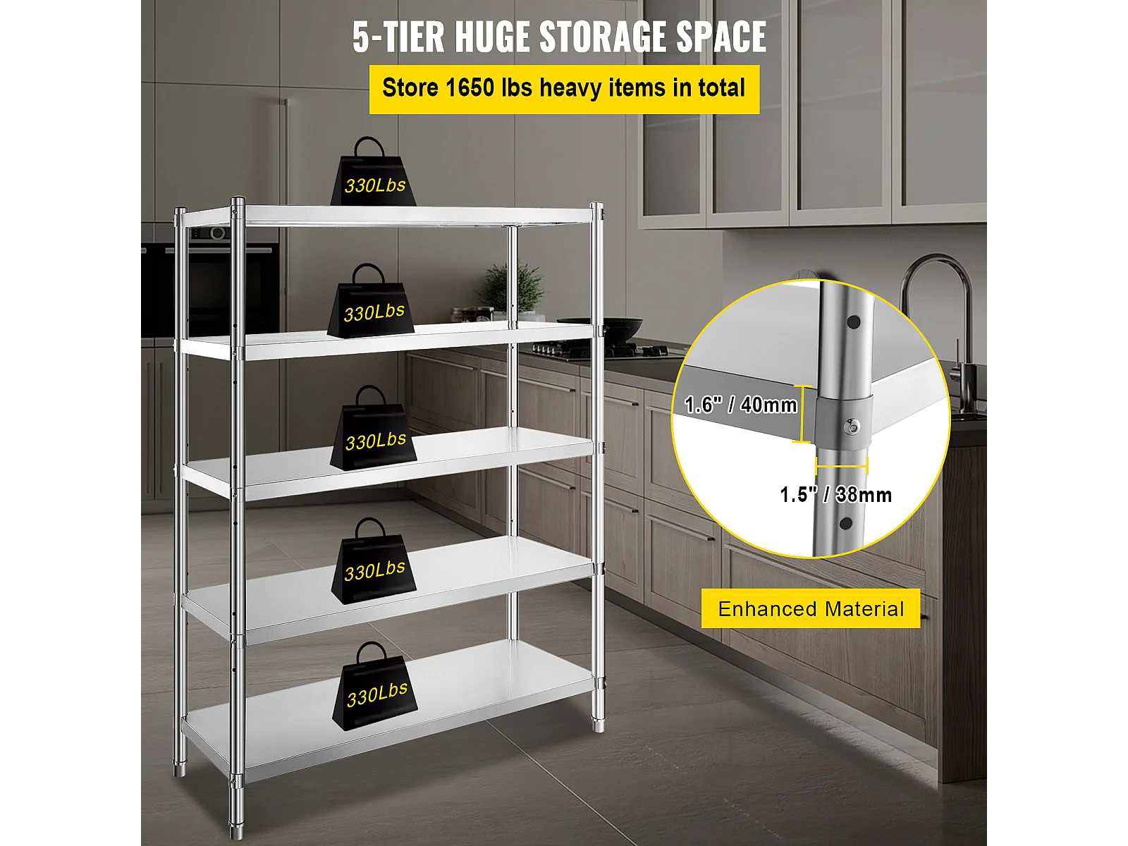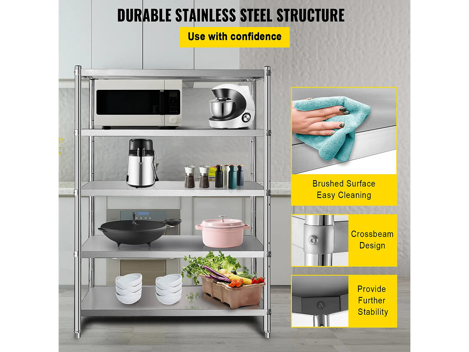 Desserte de Cuisine, Étagère de Cuisine, Étagère en acier inoxydable à 5 niveaux, étagères de rangement réglables (Étagères de Rangement Réglables)