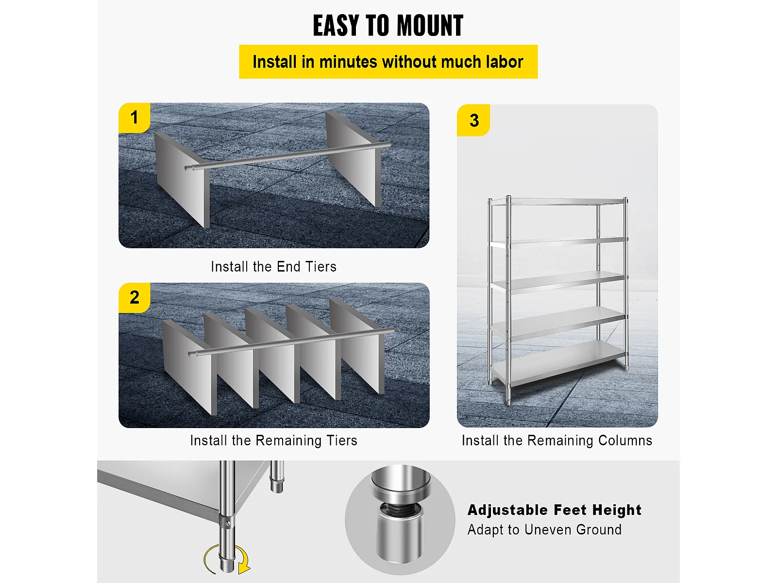 Étagère de Rangement SucceBuy Réglable à 4 Niveaux en Acier Inoxydable, Étagère Robuste, Hauteur Réglable