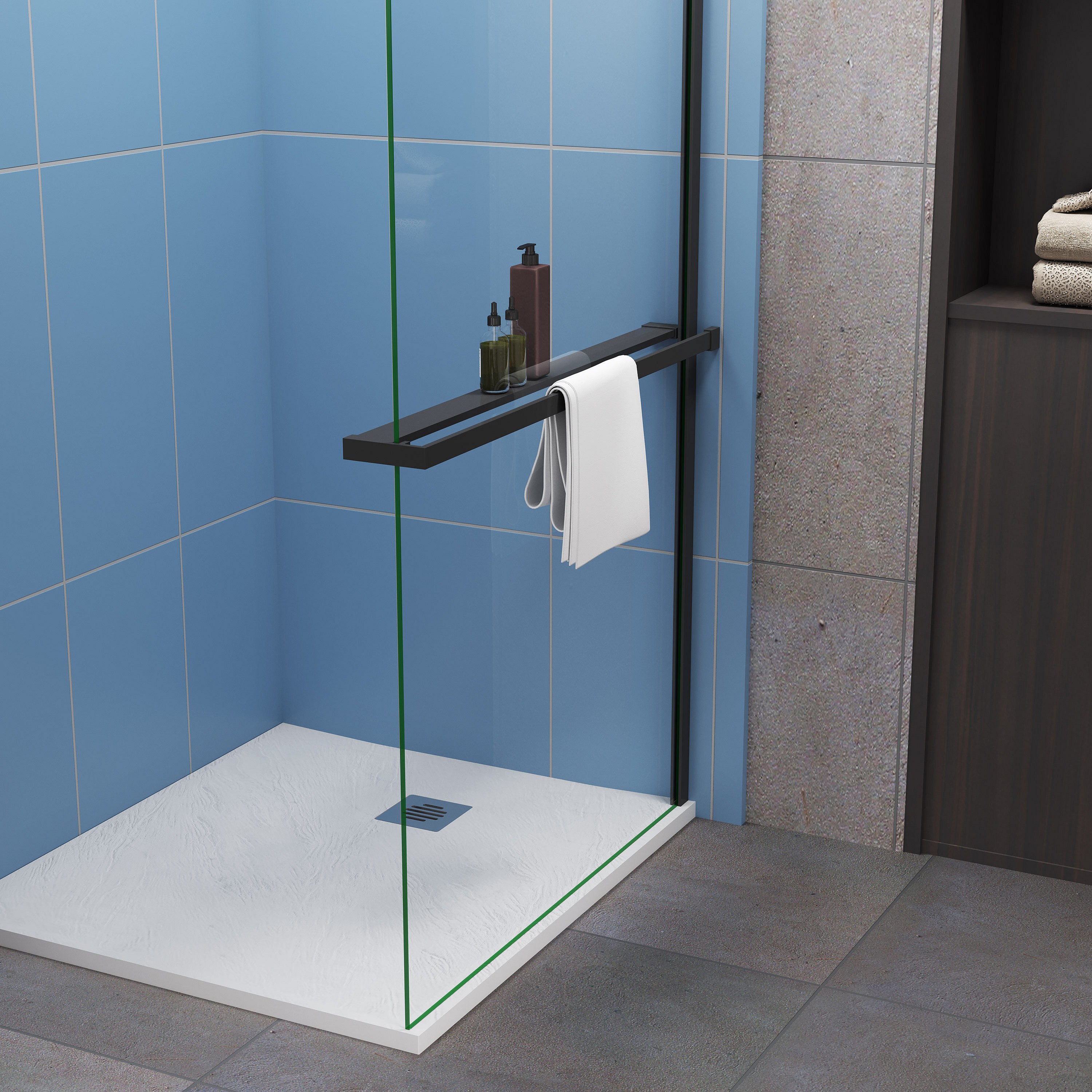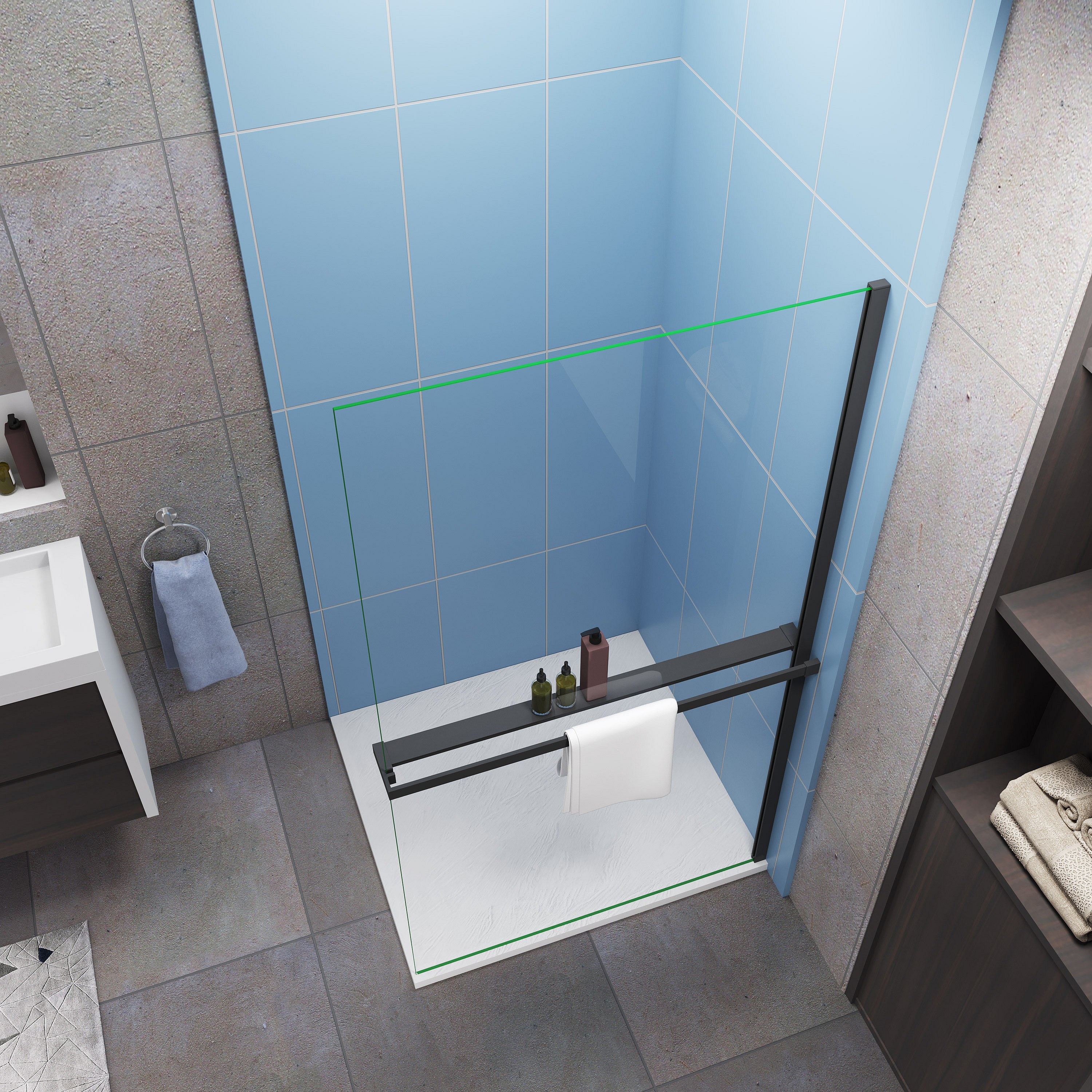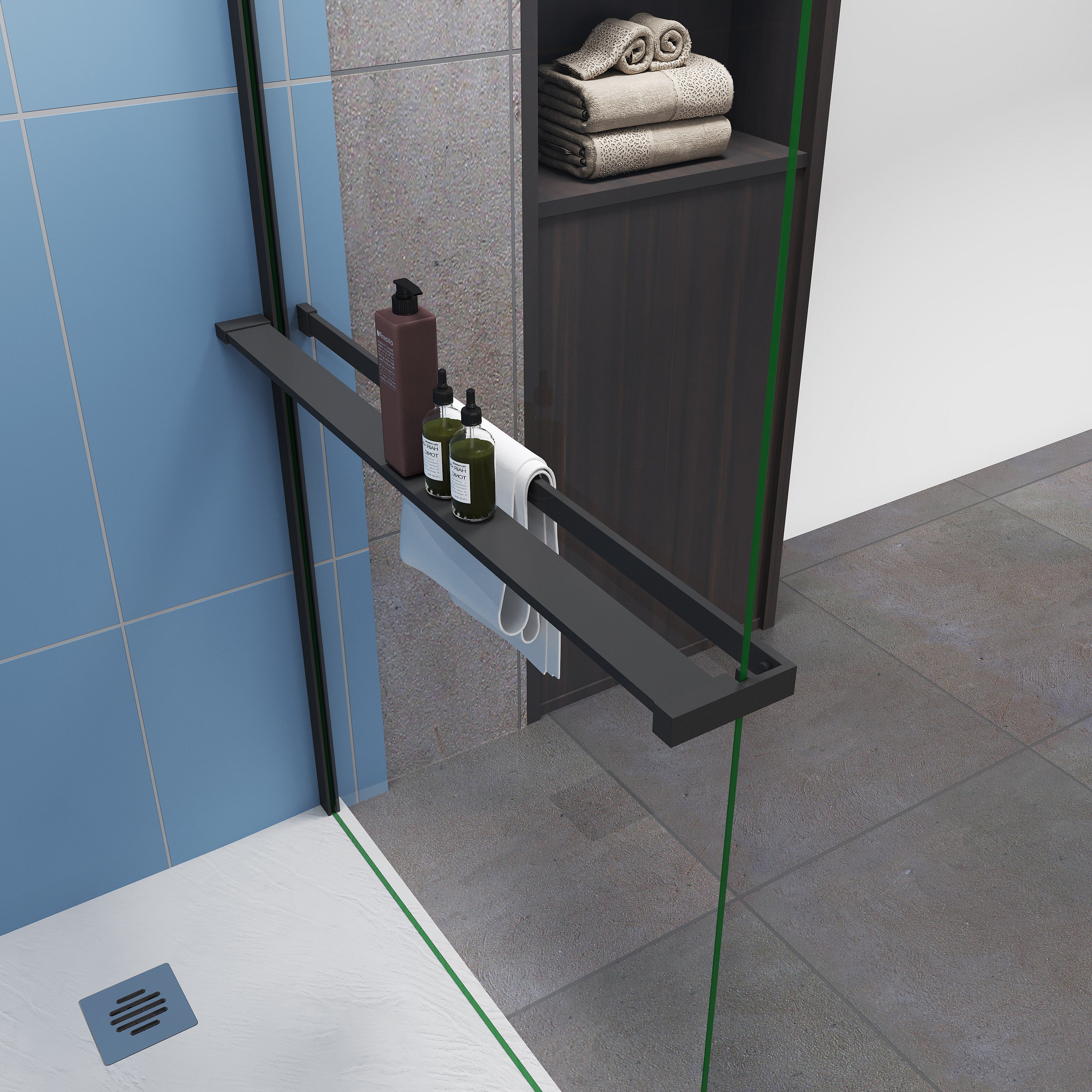 Étagère de Douche pour Paroi de Douche - Alu Noir 100 cm - Compatible Verre 8 mm, Capacité de Charge 5 kg, Accessoires Salle de Bain