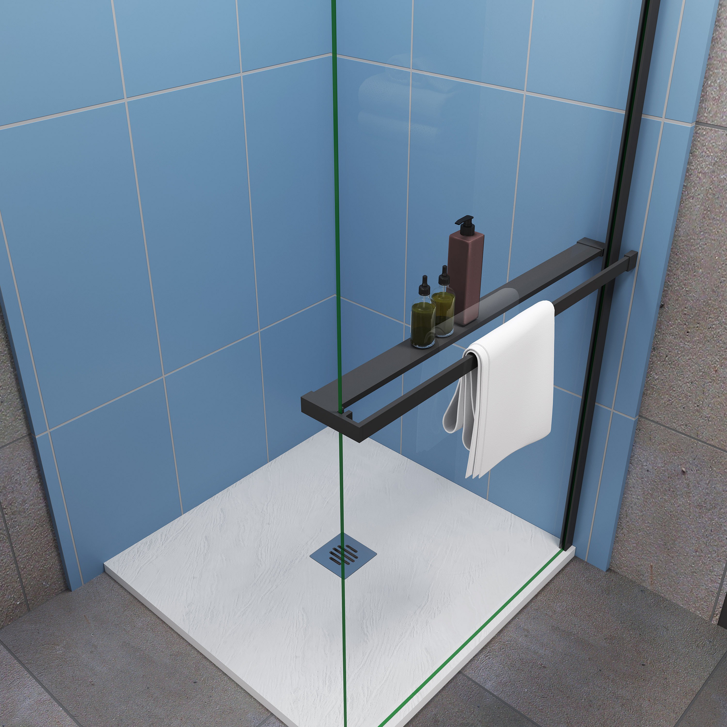 Étagère de Douche pour Paroi de Douche - Alu Noir 80 cm - Compatible Verre 8 mm, Capacité de Charge 5 kg, Accessoires Salle de Bain