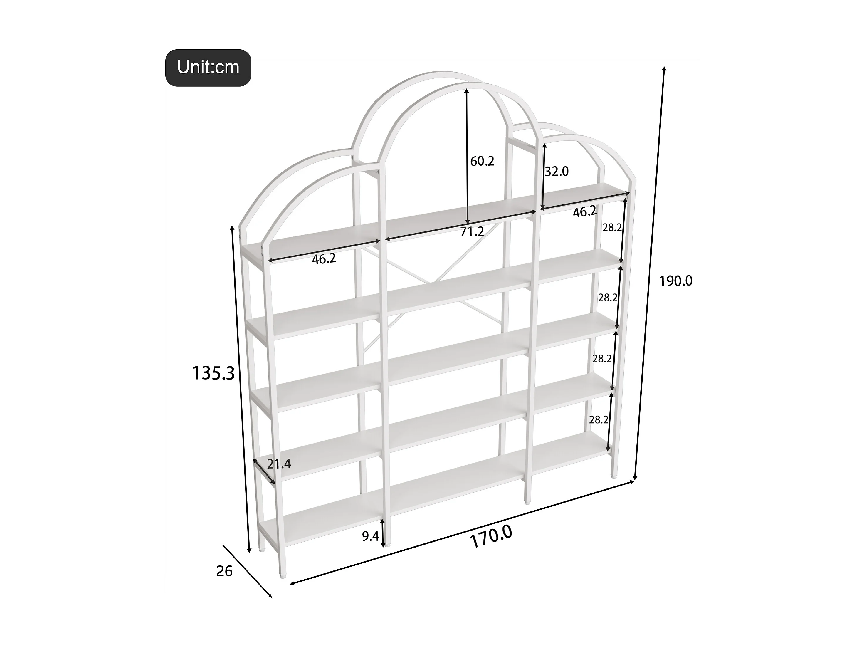 Étagère de rangement au style épuré - 170 x 26 x 190 cm - avec 5 étagères de rangement - forme nuage - MDF + métal - blanc