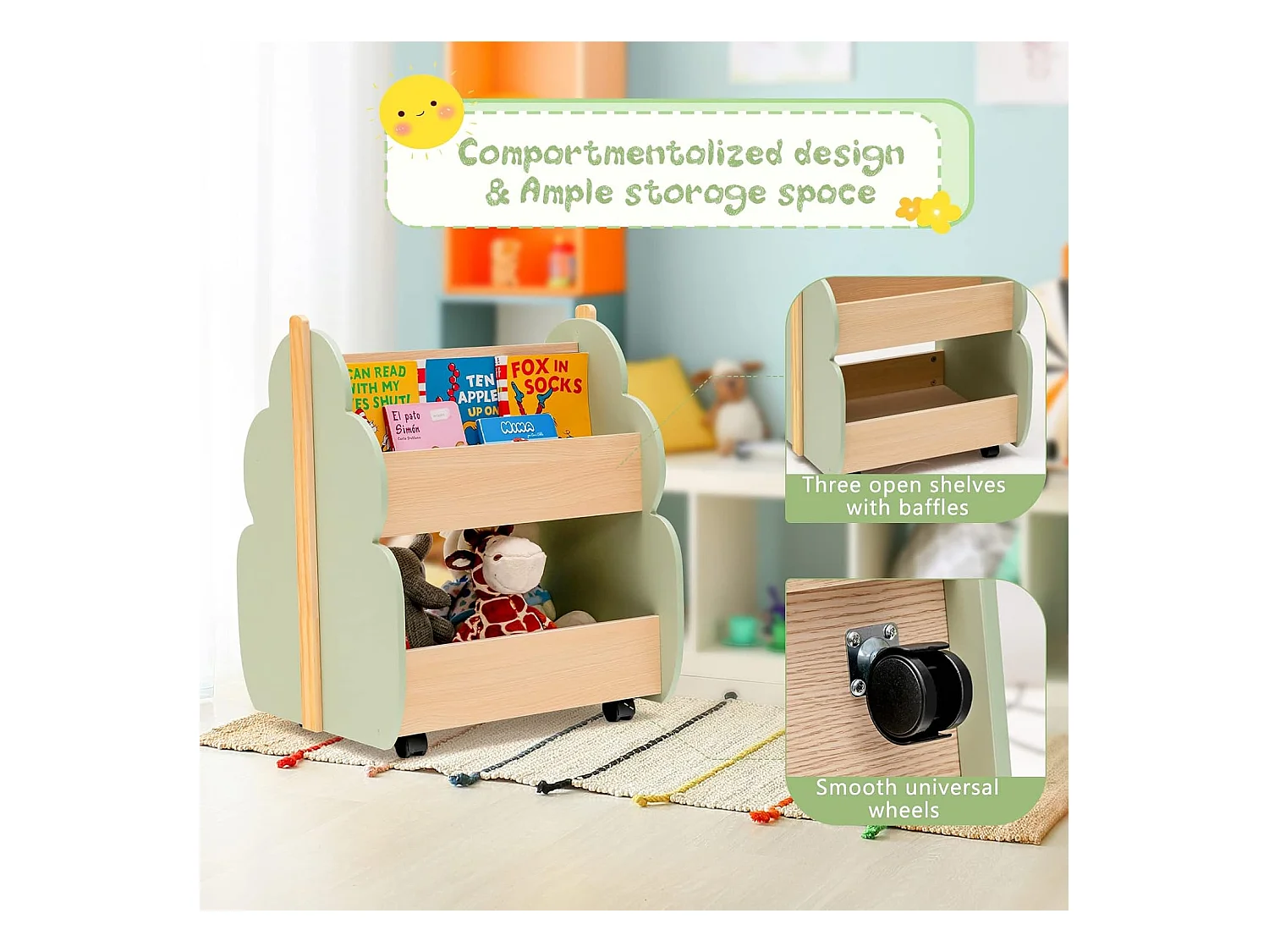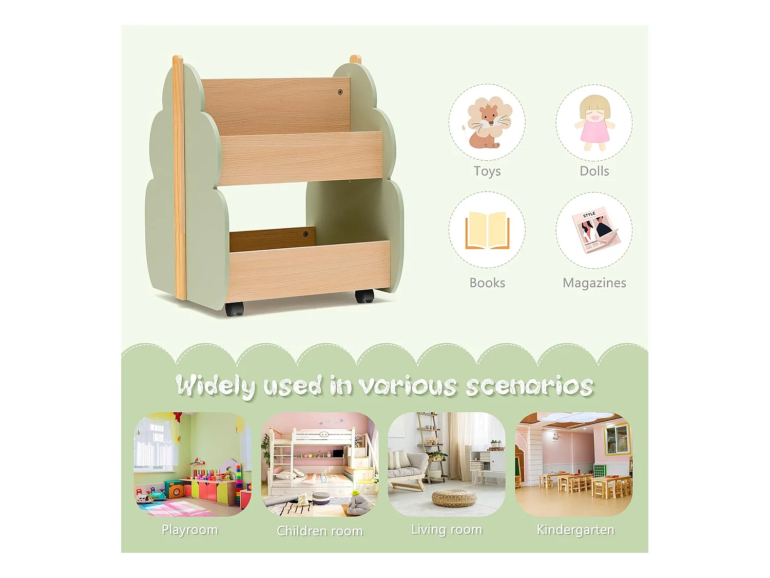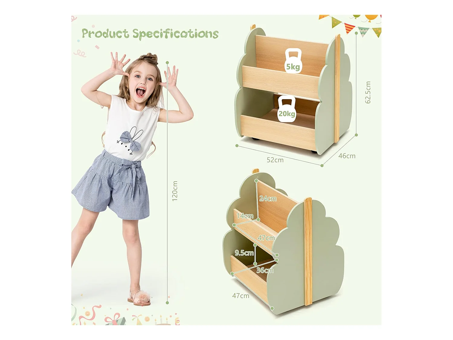 Étagère de rangement enfants ave forme de feuilles, 2 niveaux avec roues universelles