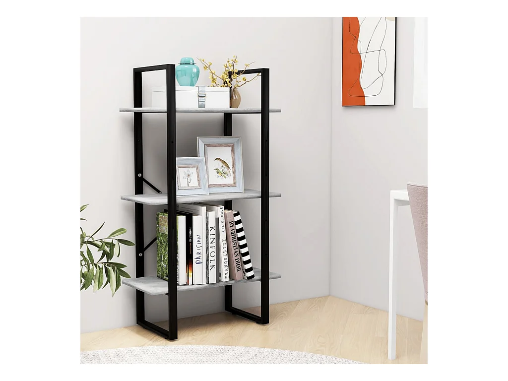 Bibliothèque 5 niveaux gris béton bois d'ingénierie