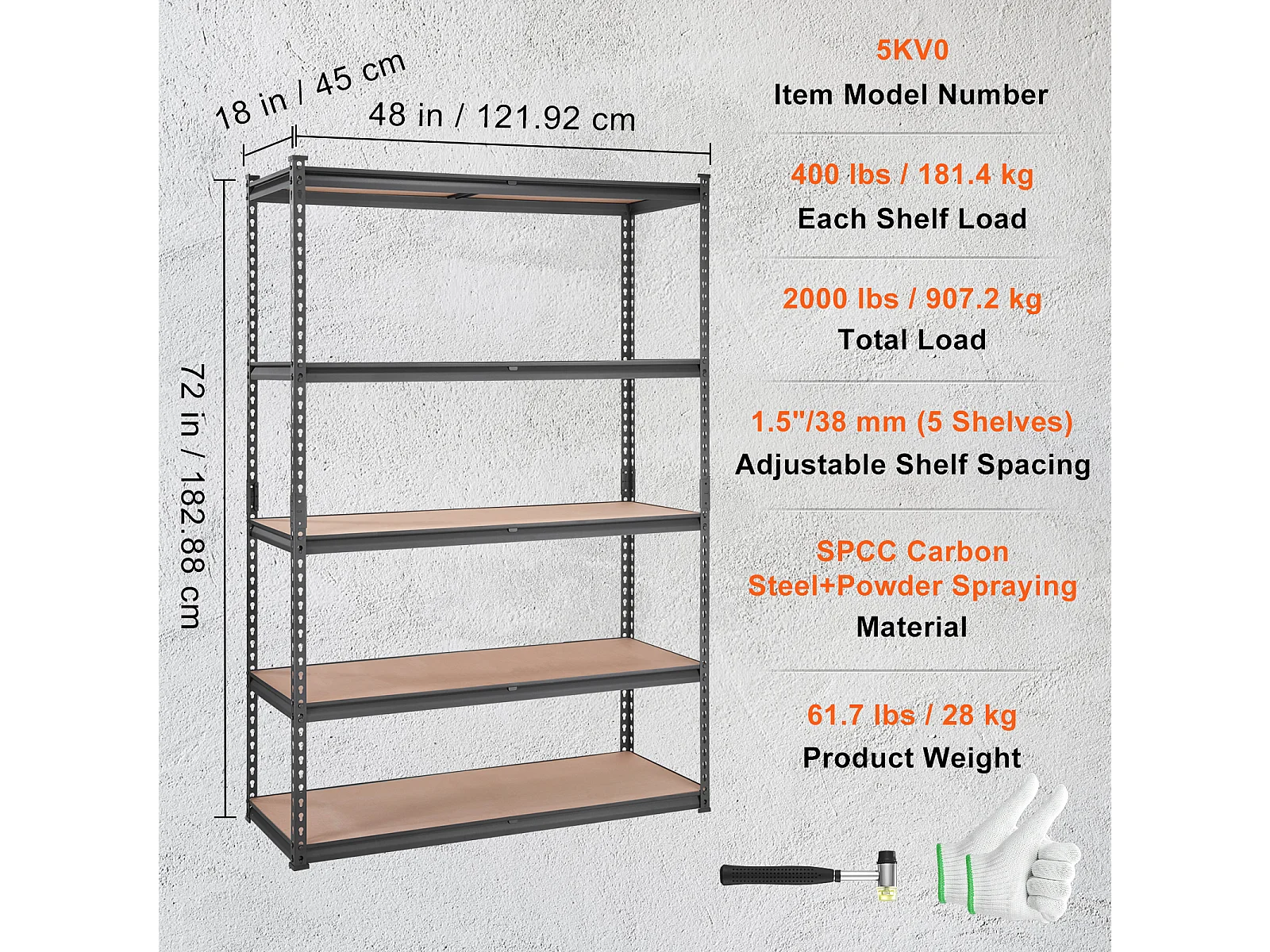 Étagère de Rangement SucceBuy pour Garage, à 5 Niveaux, Réglable, Charge de 907 kg