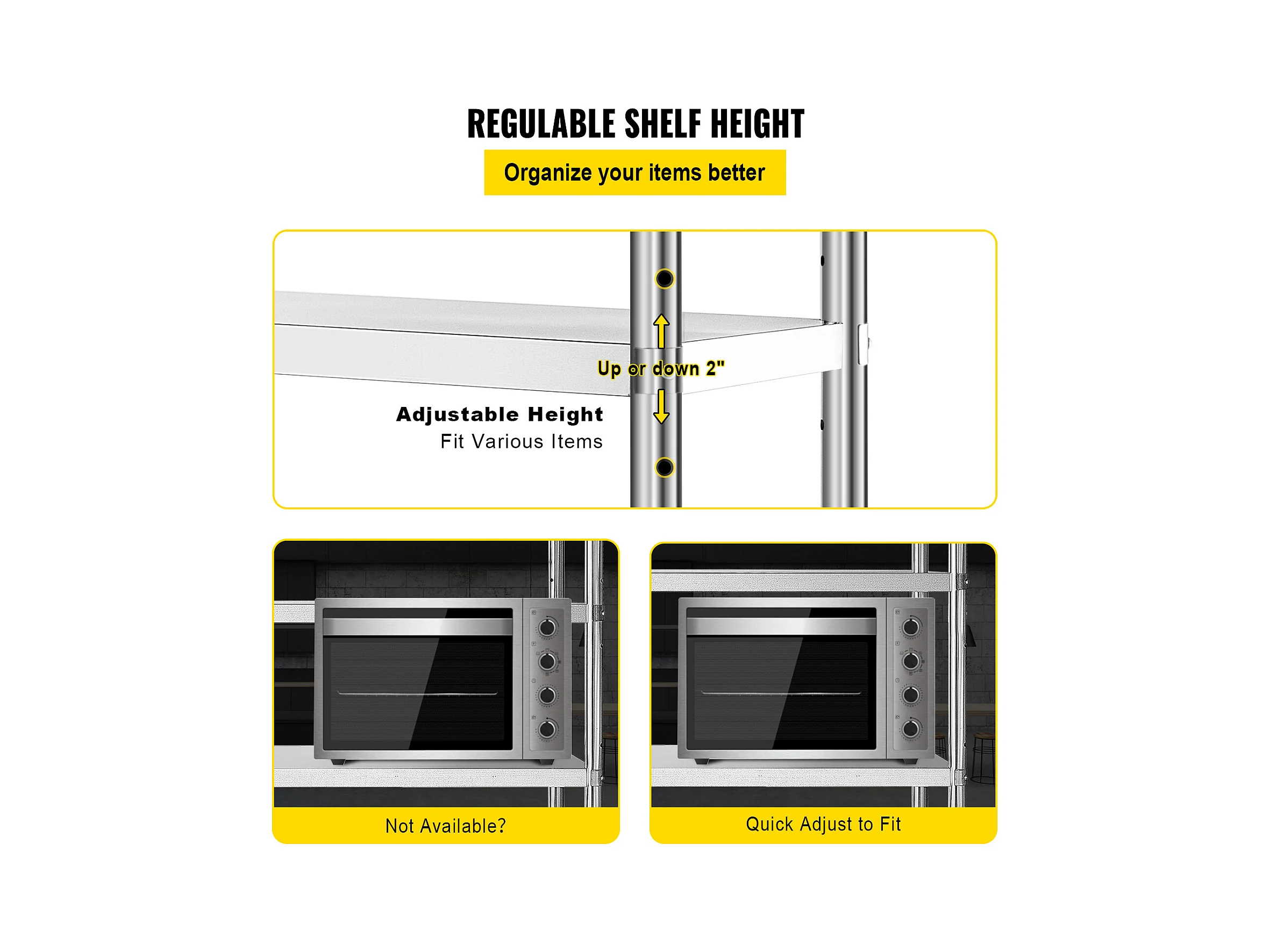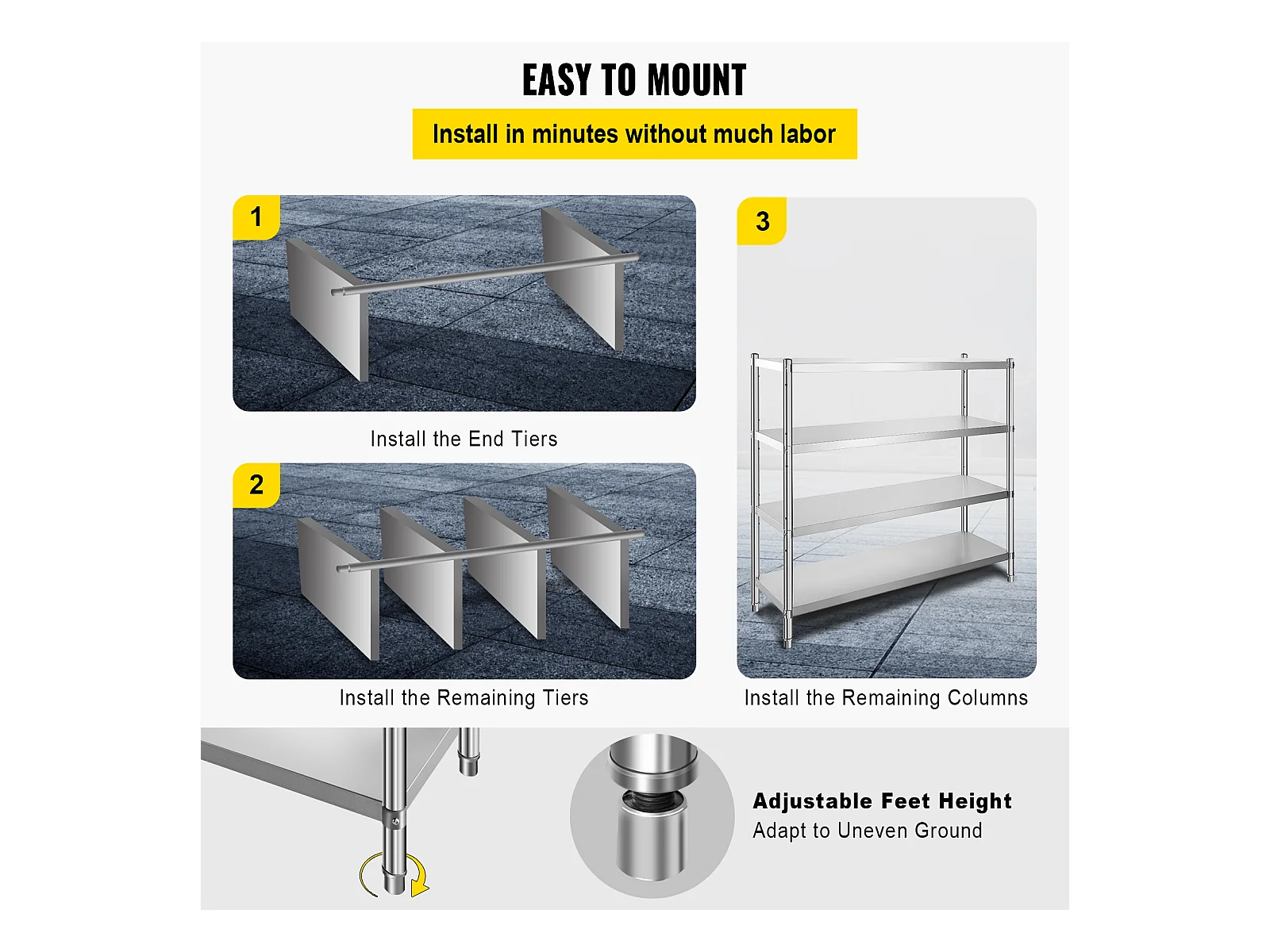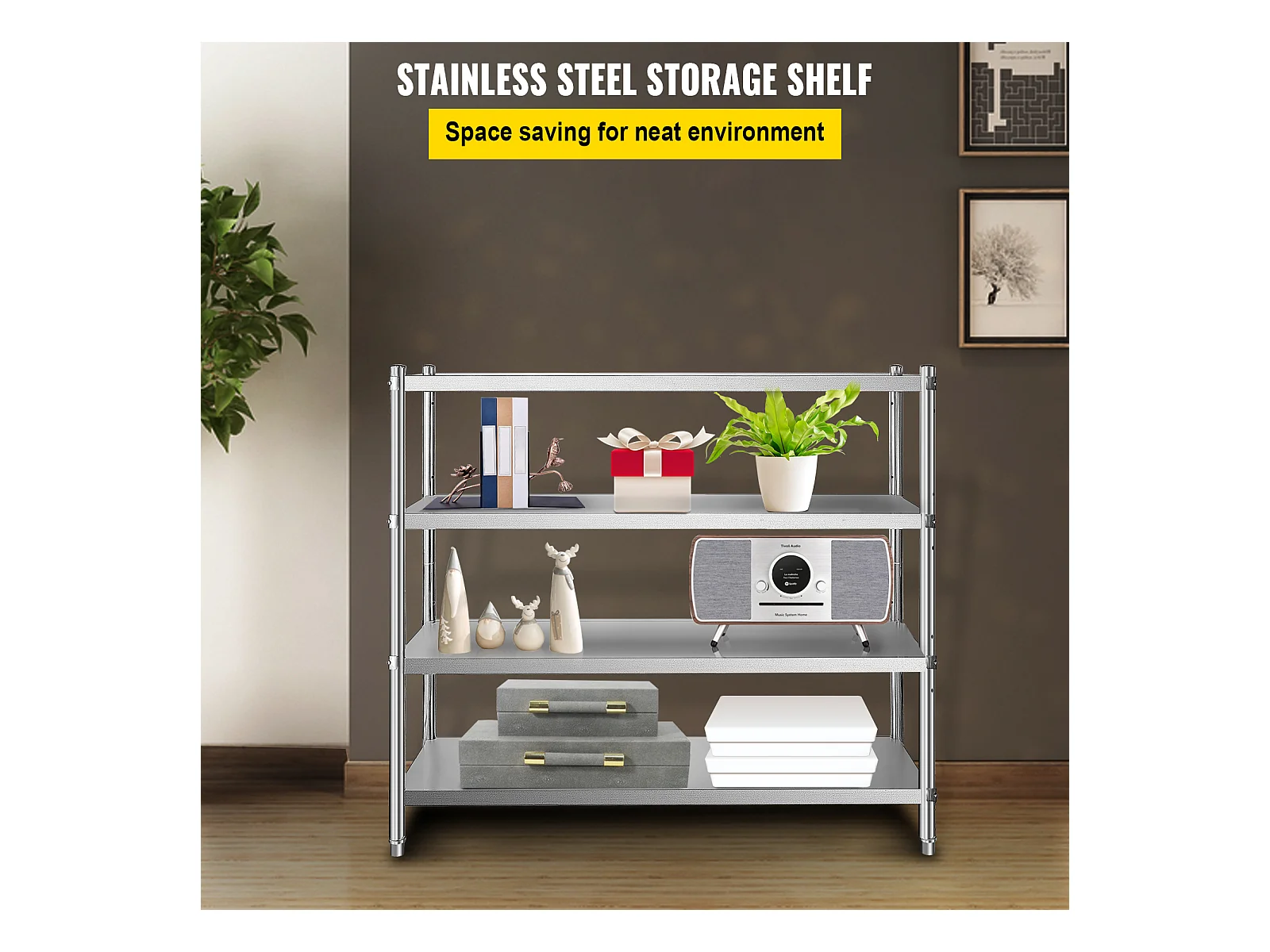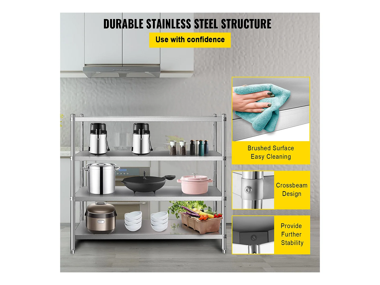 Étagère de Rangement SucceBuy Réglable à 4 Niveaux en Acier Inoxydable, Étagère Robuste, Hauteur Réglable