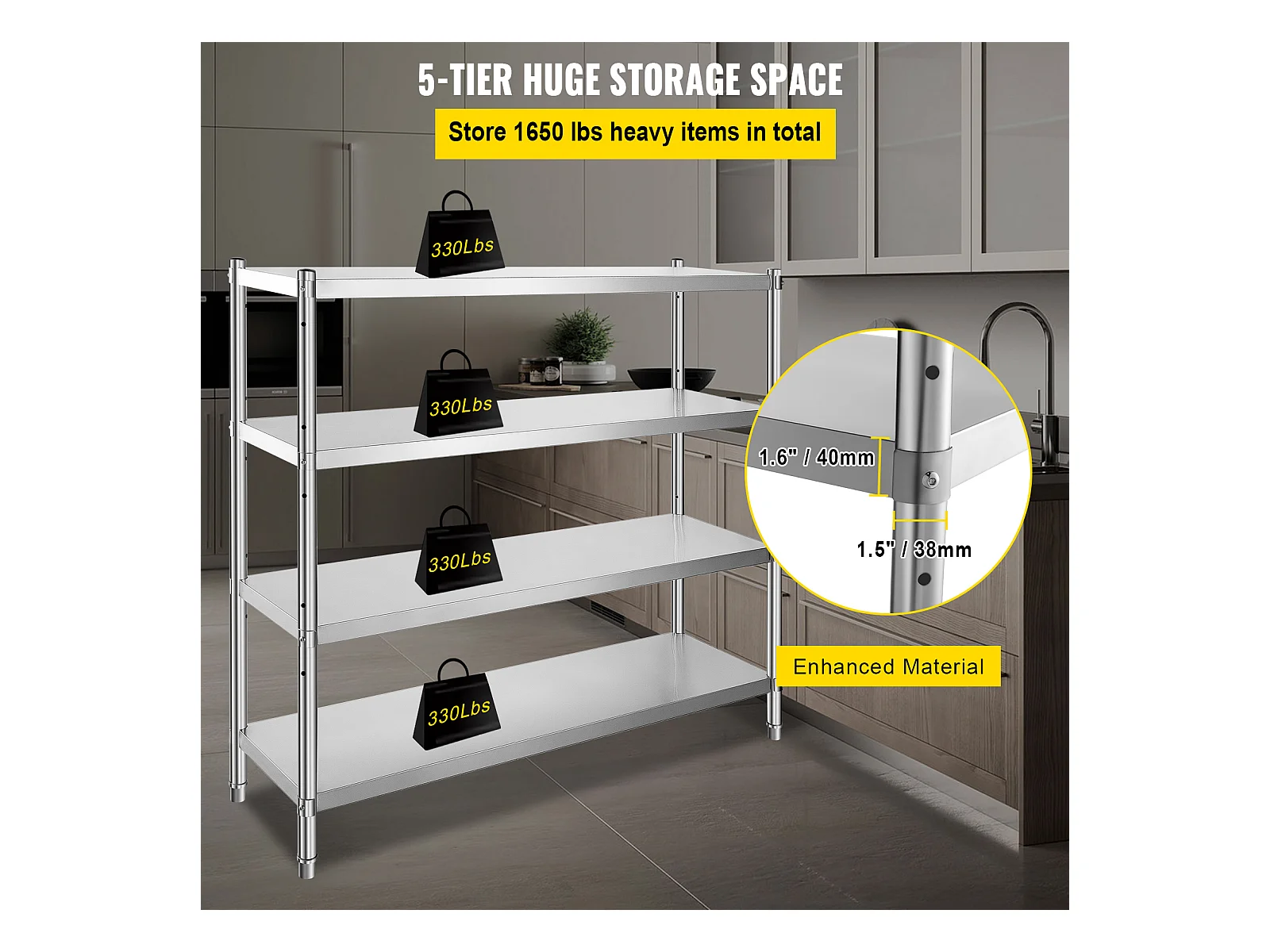 Desserte de Cuisine, Étagère de Cuisine, Étagère en acier inoxydable à 5 niveaux, étagères de rangement réglables (Étagères de Rangement Réglables)