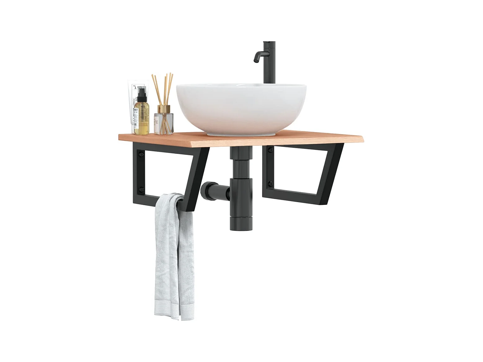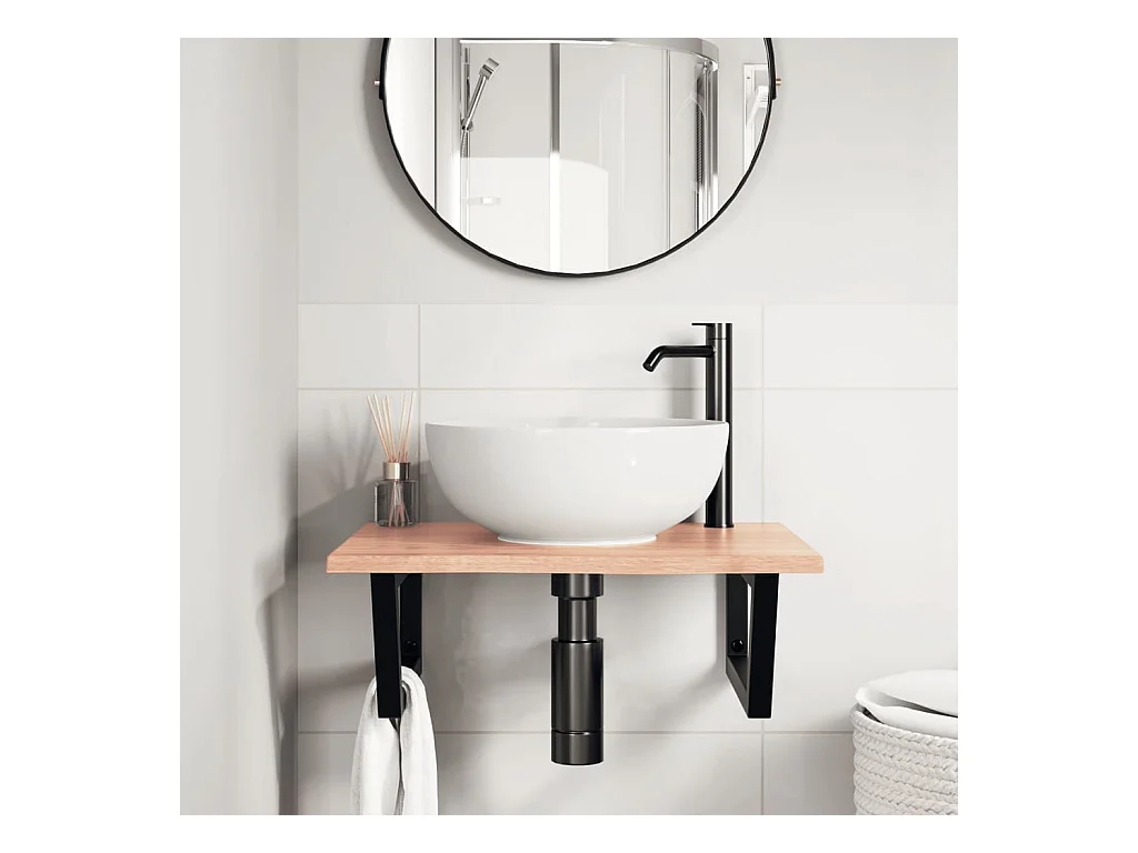 Étagère de vasque murale acier et bois de chêne massif