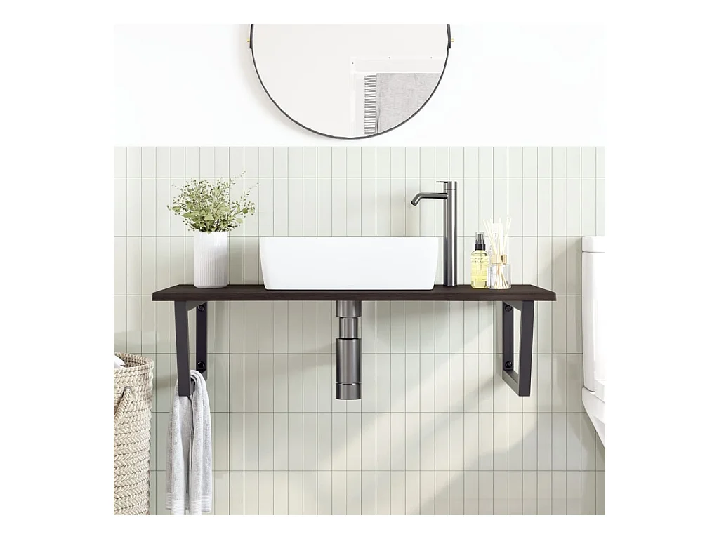 Étagère de vasque murale acier et bois de chêne massif