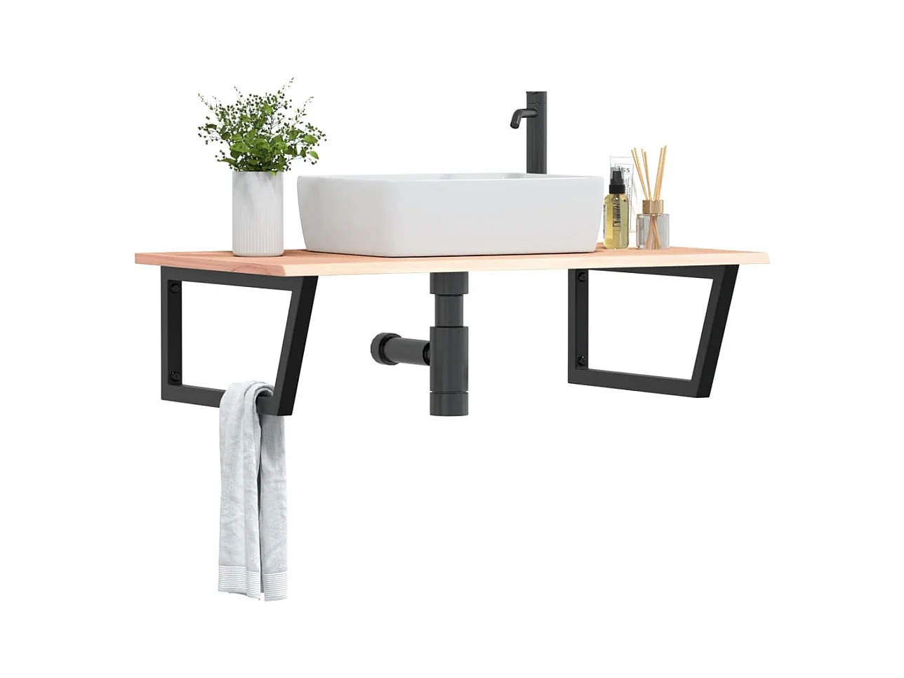 Étagère de vasque murale acier et bois massif de hêtre