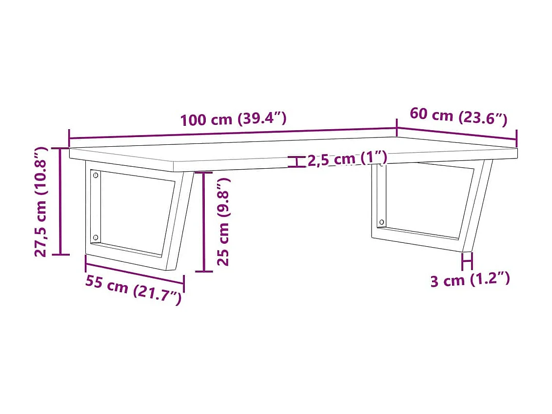 Étagère de vasque murale acier et bois de chêne massif