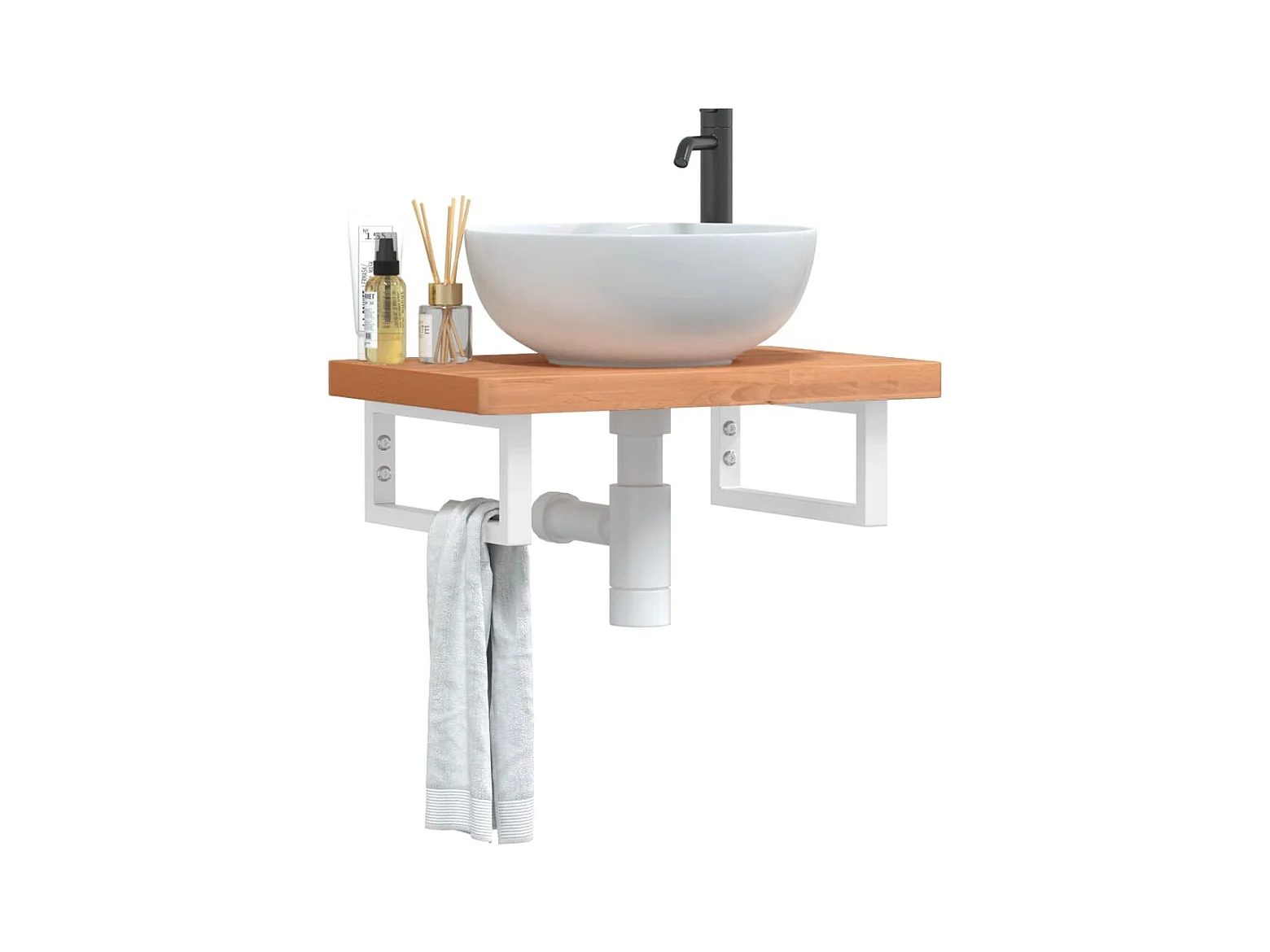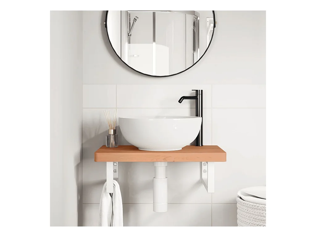 Étagère de vasque murale acier et bois massif de hêtre