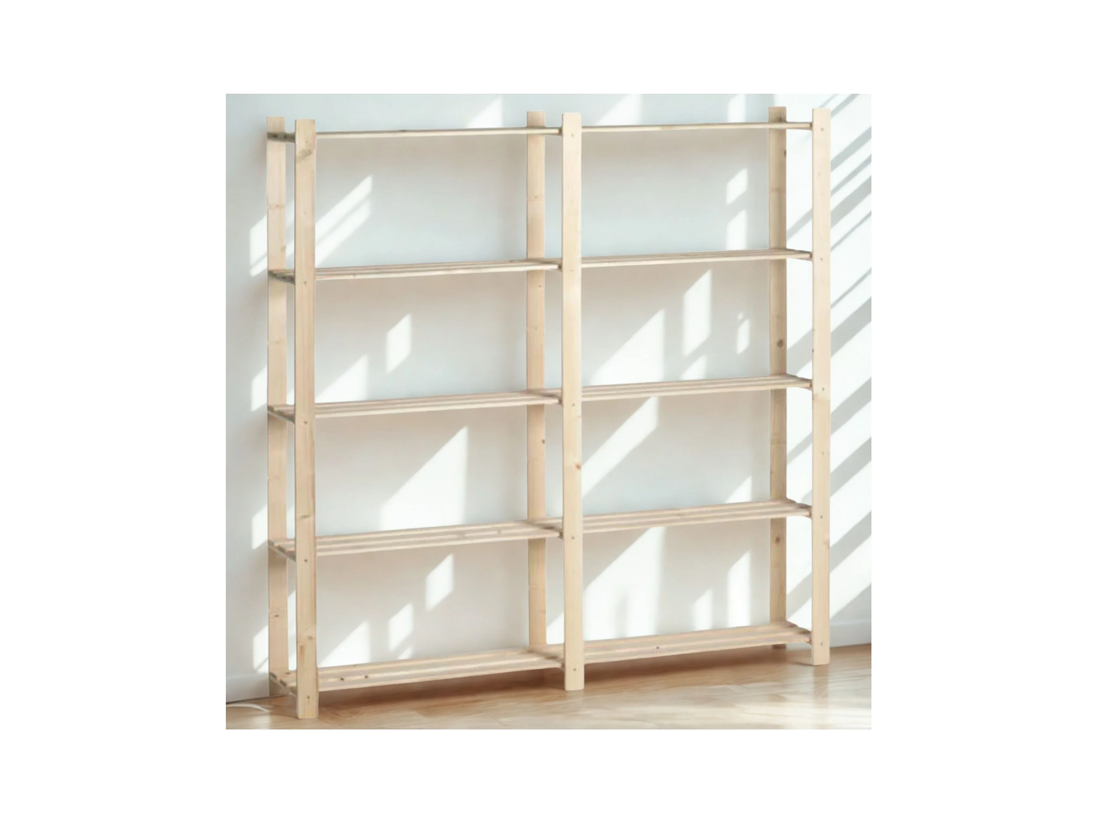 Étagère double en bois – 5 tablettes – 175 × 175 × 30 cm