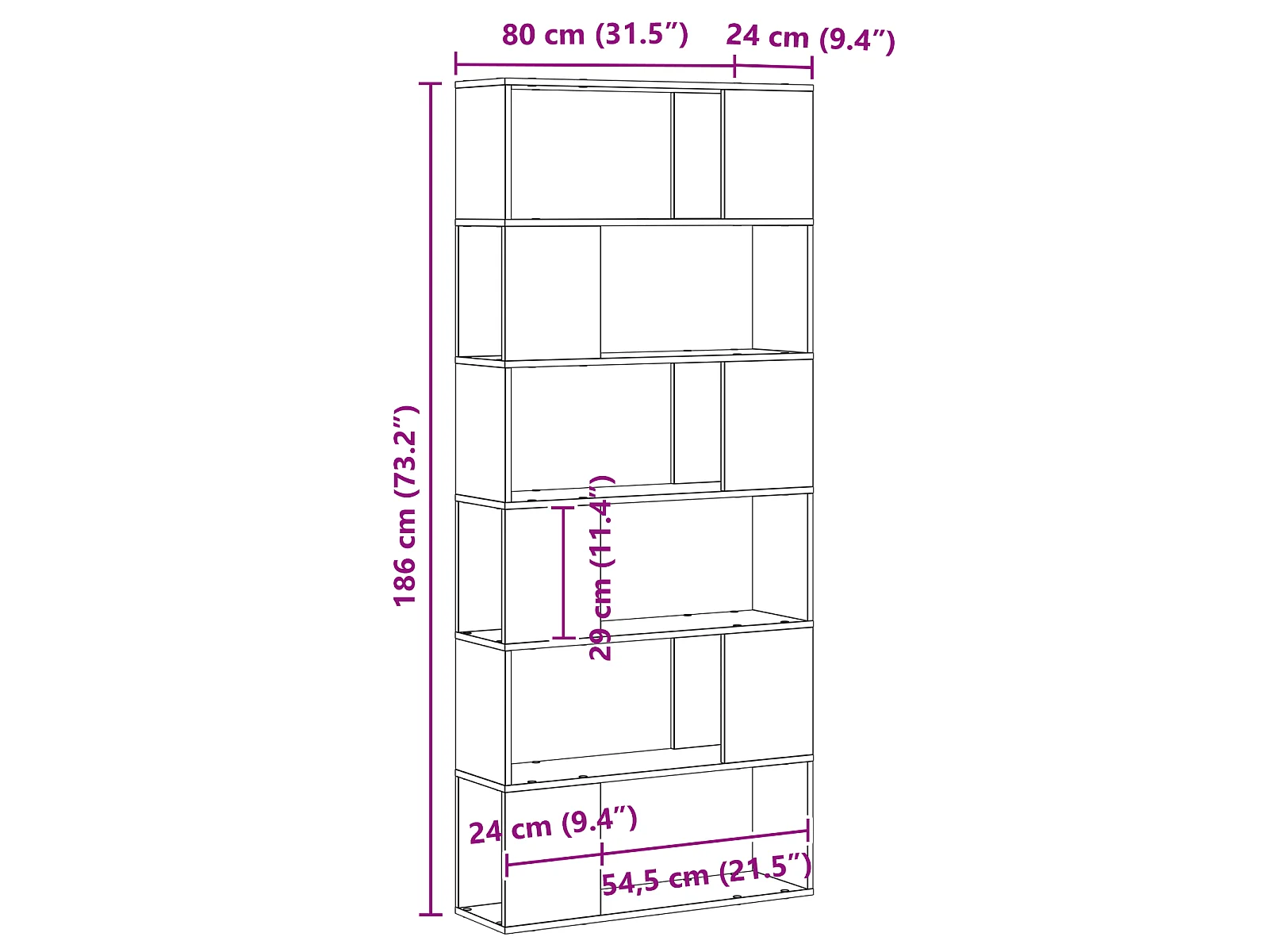 Étagère en chêne noir 80x24x186 cm en bois d'ingénierie