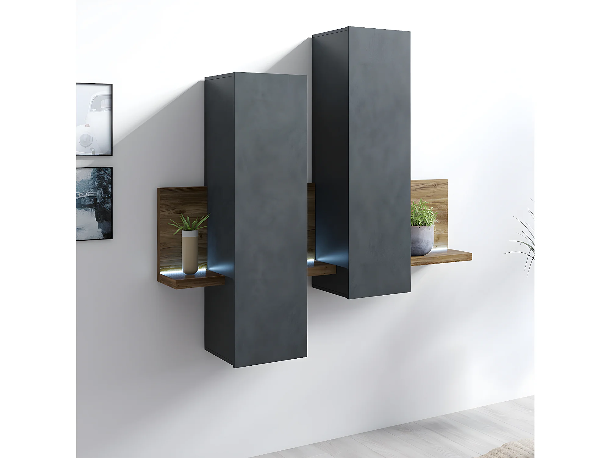 Étagère et armoire murale 150 cm Ilyes Gris et Bois