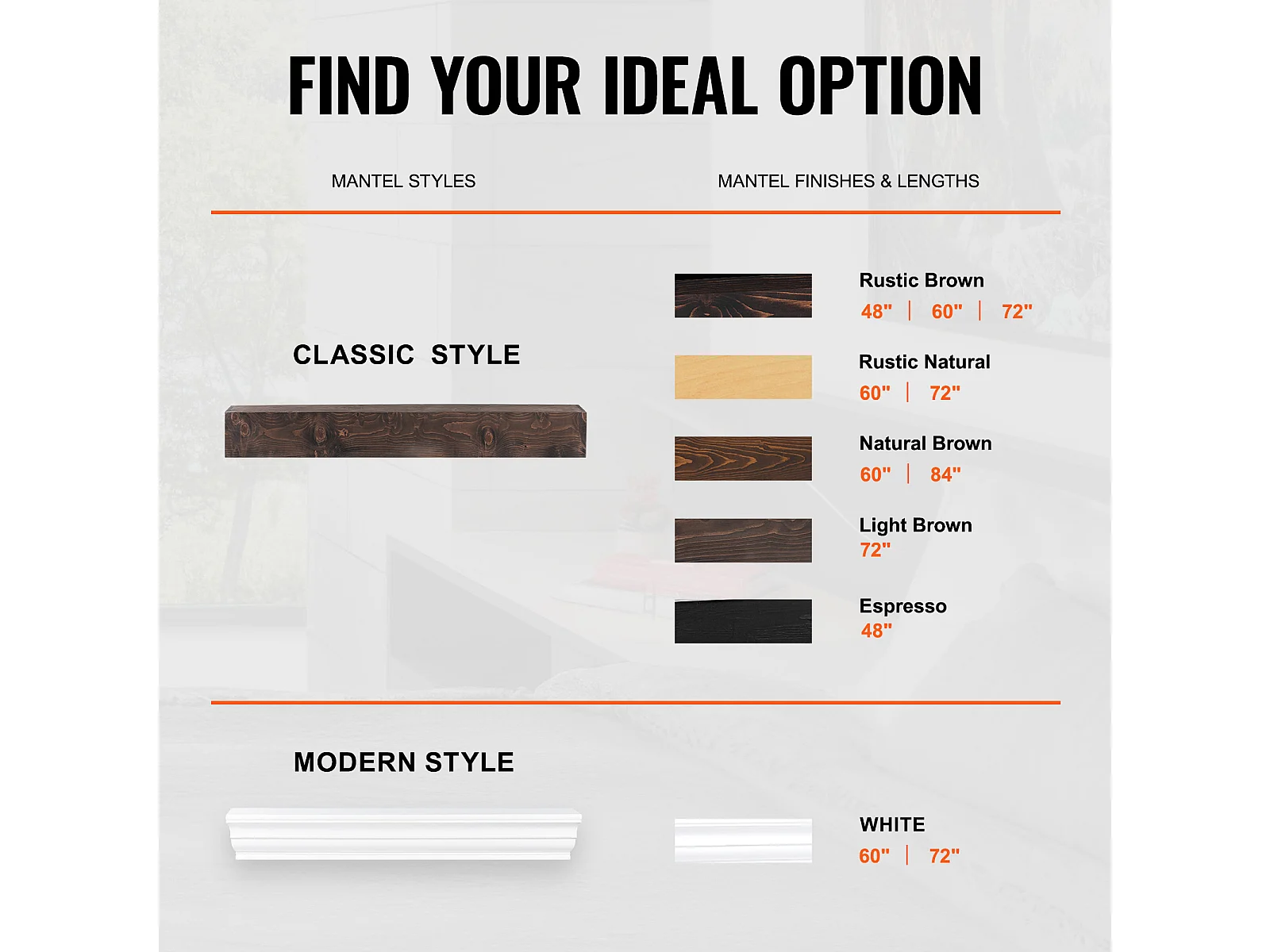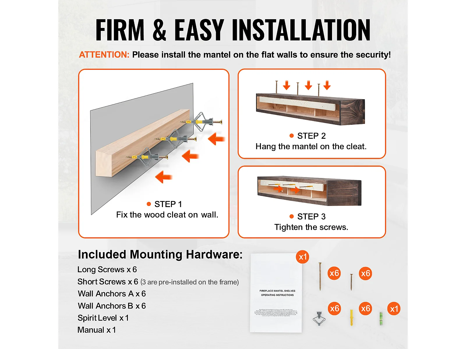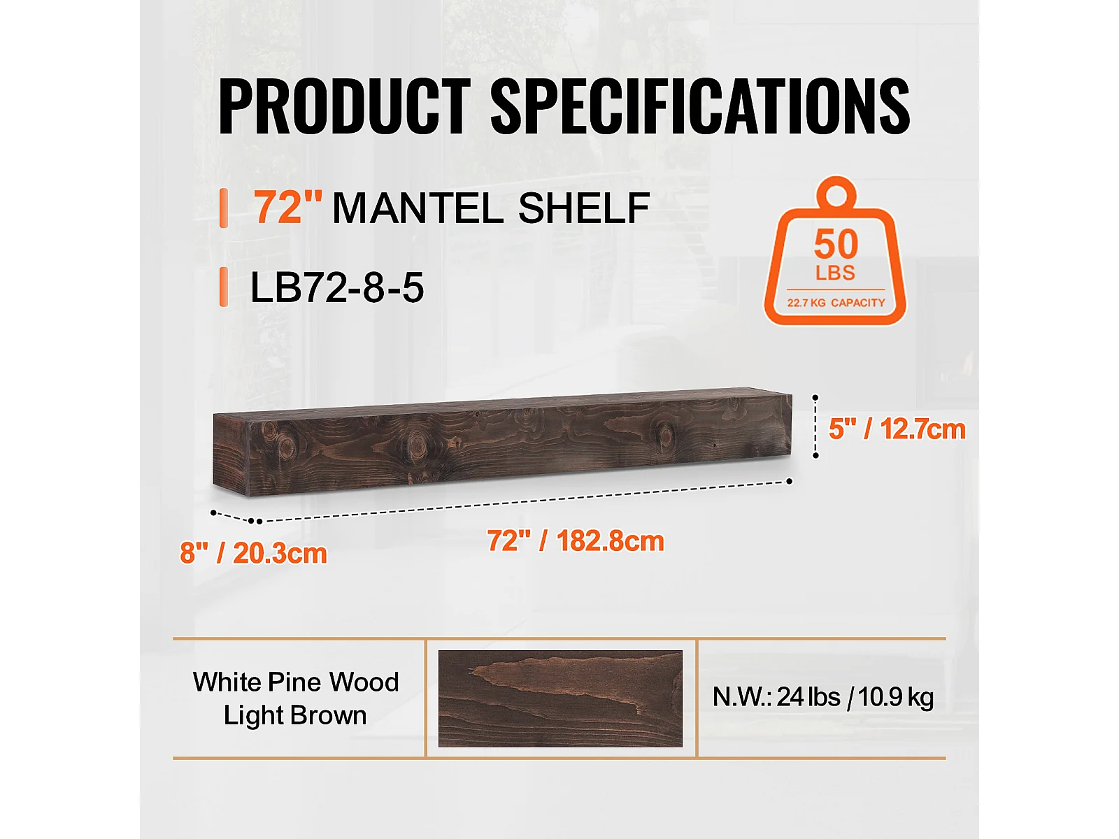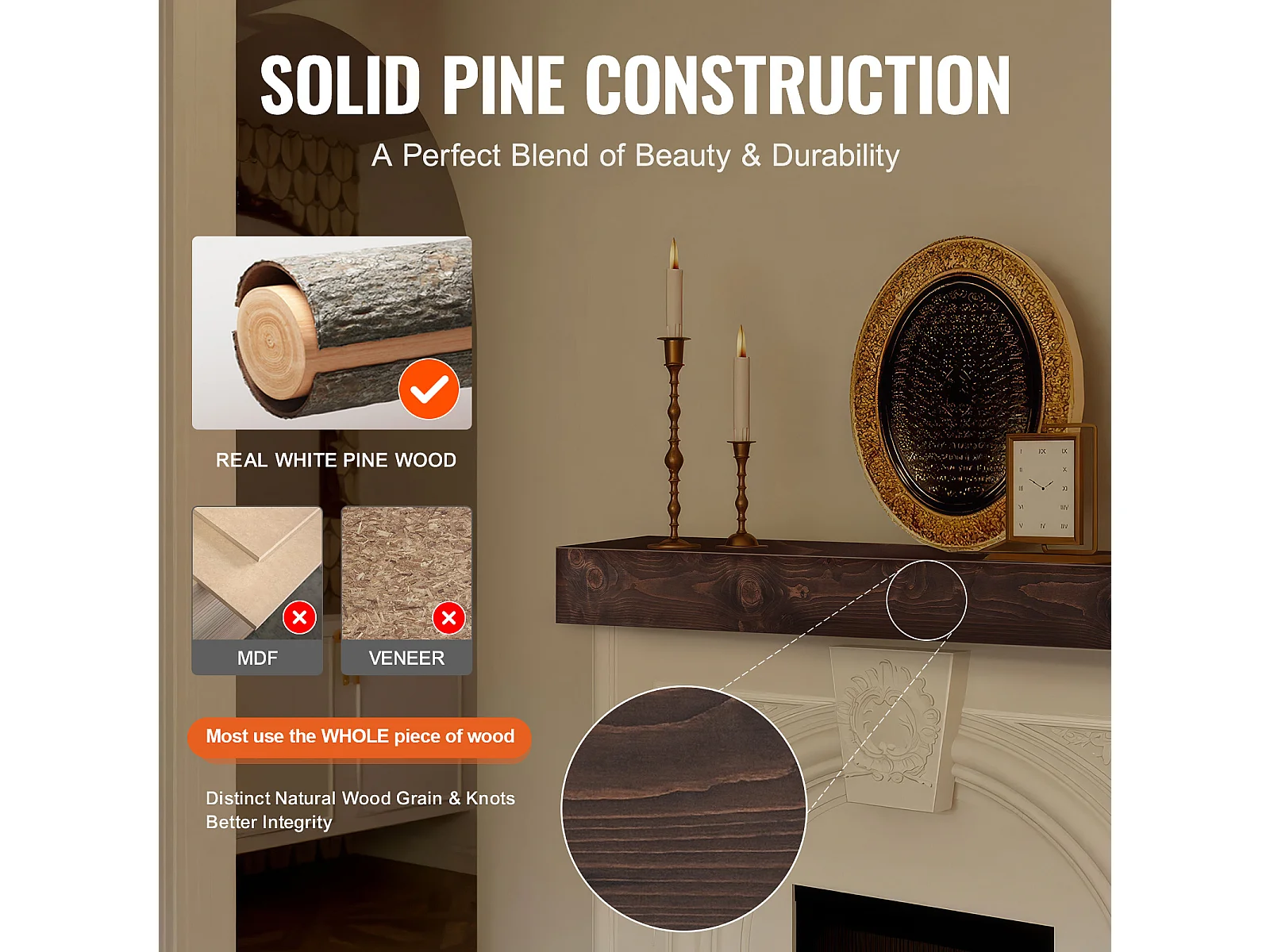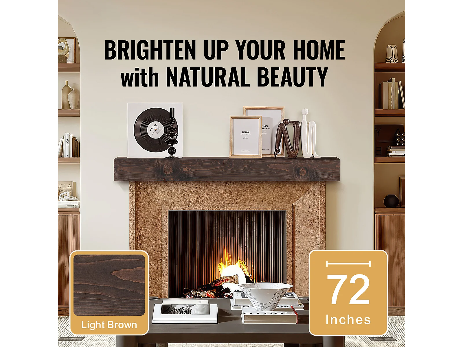 Étagère Flottante Murale en Bois Rustique SucceBuy, 183 cm, Marron Clair, Manteau Cheminée