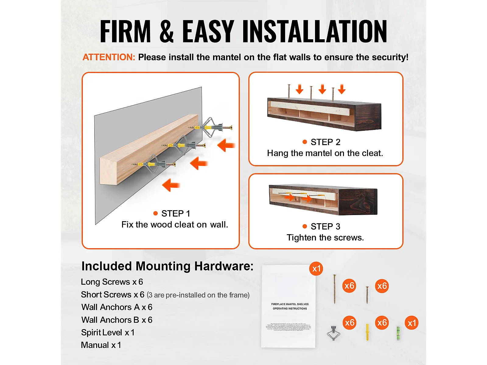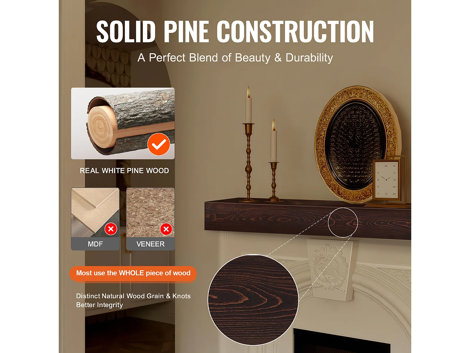 Étagère Flottante Murale SucceBuy, en Bois Rustique, 182,8 cm, Marron