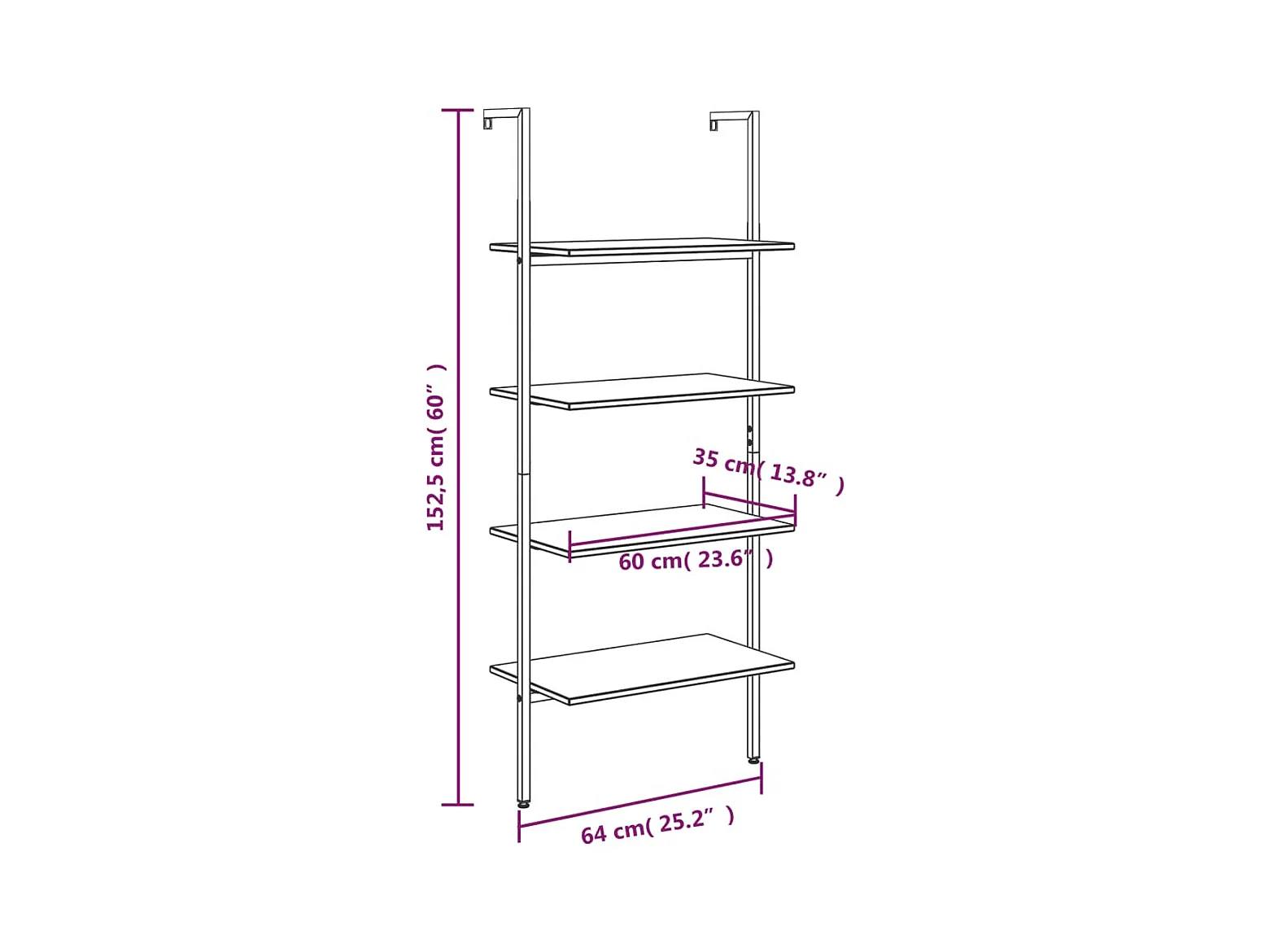Étagère inclinée 4 niveaux Marron foncé et noir 64x35x152,5 cm