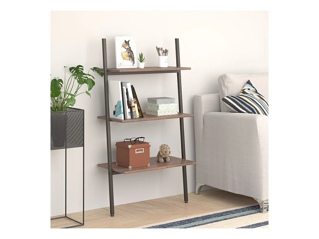 Étagère inclinée à 3 niveaux Marron foncé et noir 64x35x120,5cm OFR83321 BonneVie Meuble
