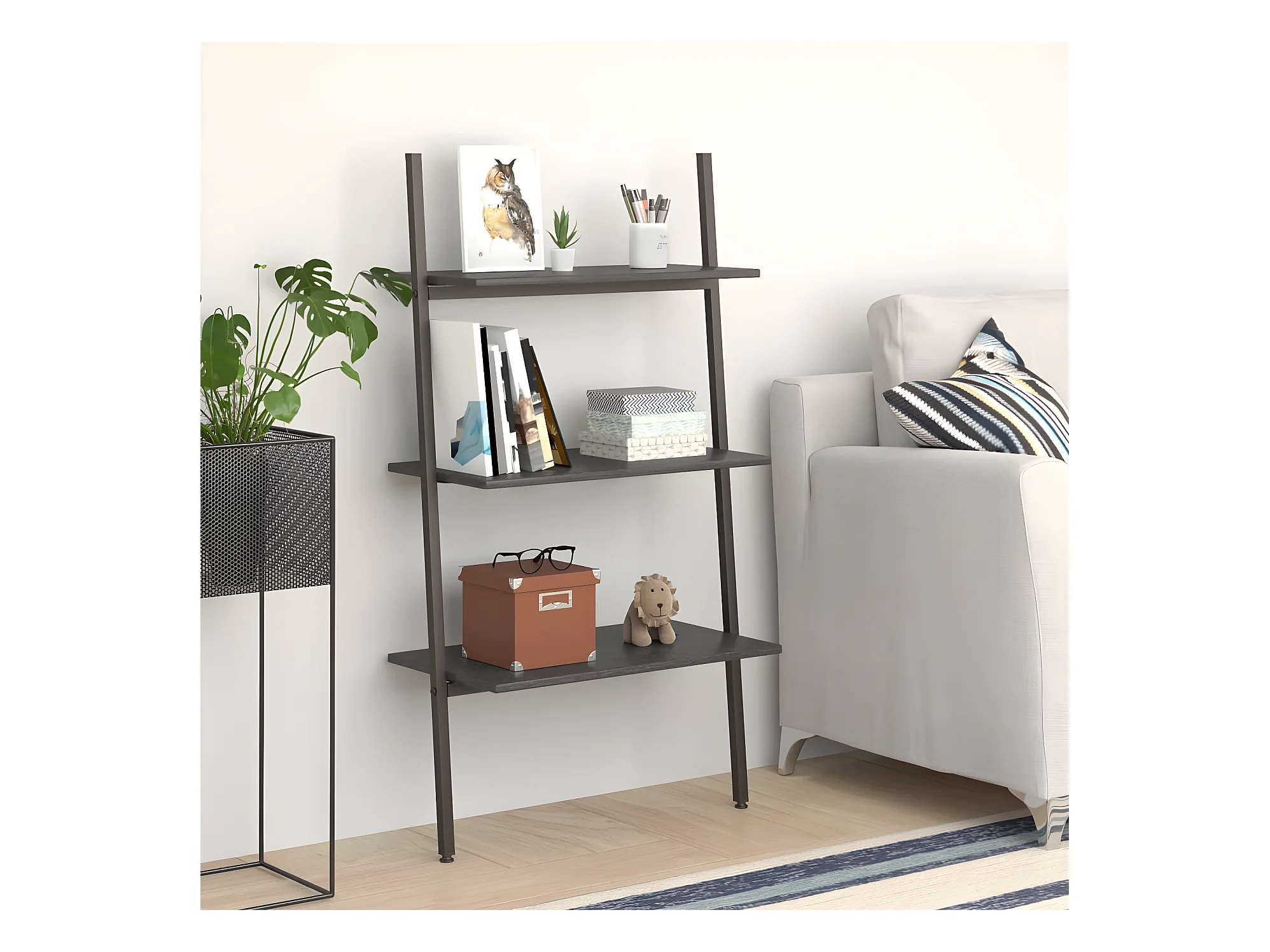 Étagère inclinée à 3 niveaux Noir 64x35x120,5 cm