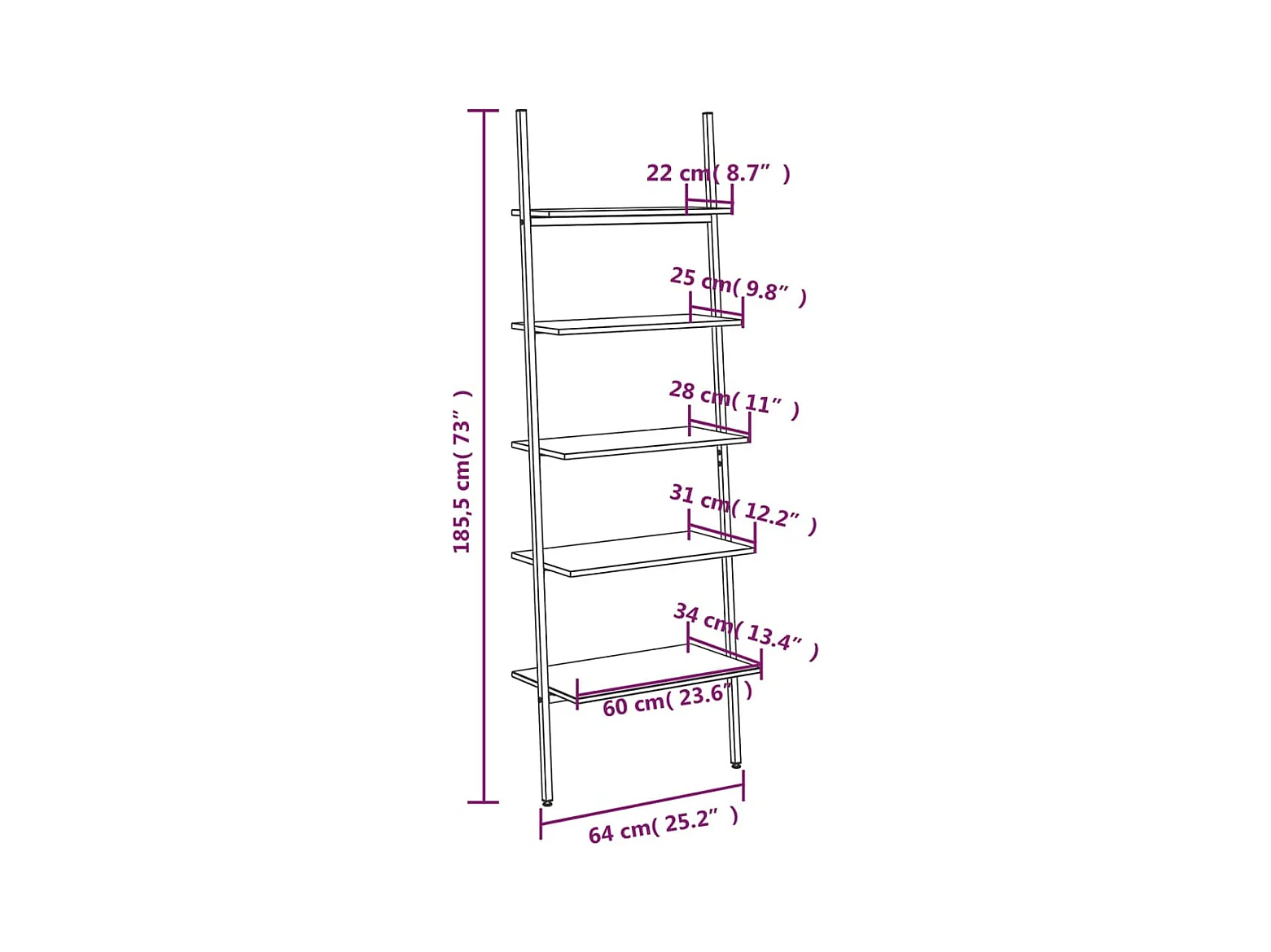 Étagère inclinée à 5 niveaux Marron foncé et noir 64x34x185,5cm