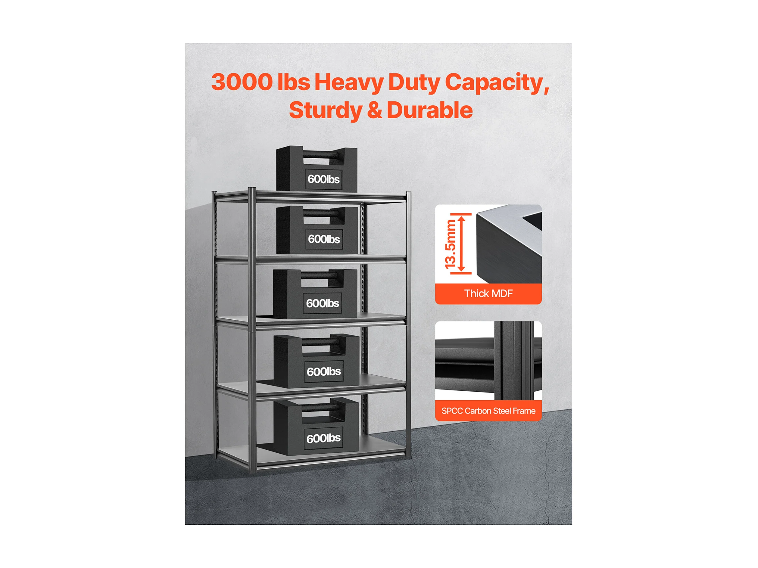 Étagère Métallique Garage SucceBuy Étagère de Rangement pour Garage à 5 Niveaux, 61 cm P x 122 cm L x 183 cm H