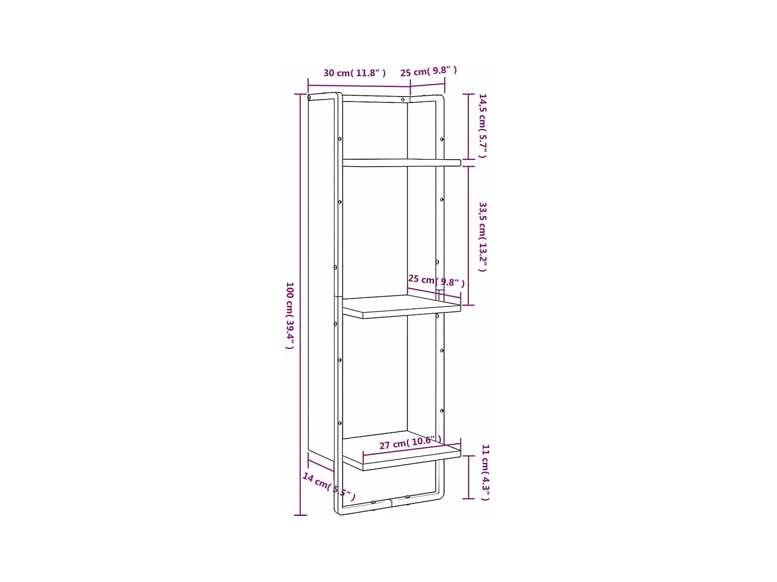Étagère murale 3 niveaux sonoma gris 30x25x100 cm