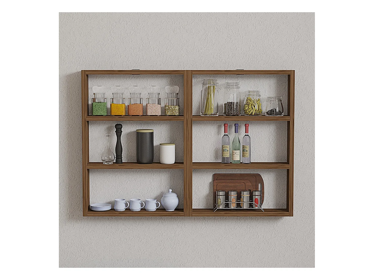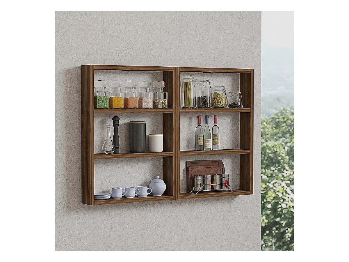 Étagère murale Dpittarell, Étagère, Tablette murale, Rayonnage polyvalent, 35x22 h60 cm, Noyer et Jaune