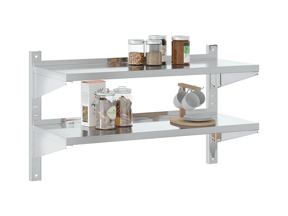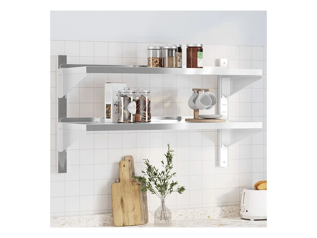 Étagère murale 2 niveaux 100x23,5x60cm argenté acier inoxydable