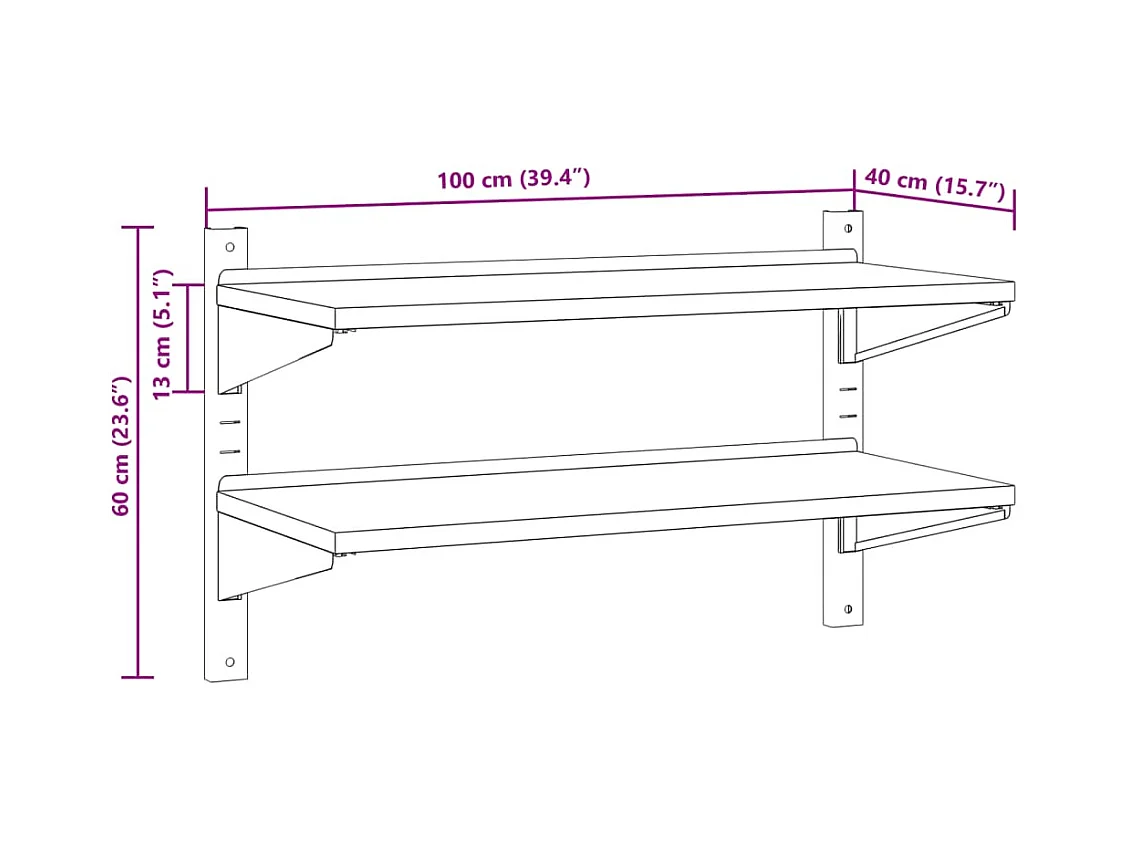 Étagère murale à 2 niveaux 100x40x60cm argenté acier inoxydable