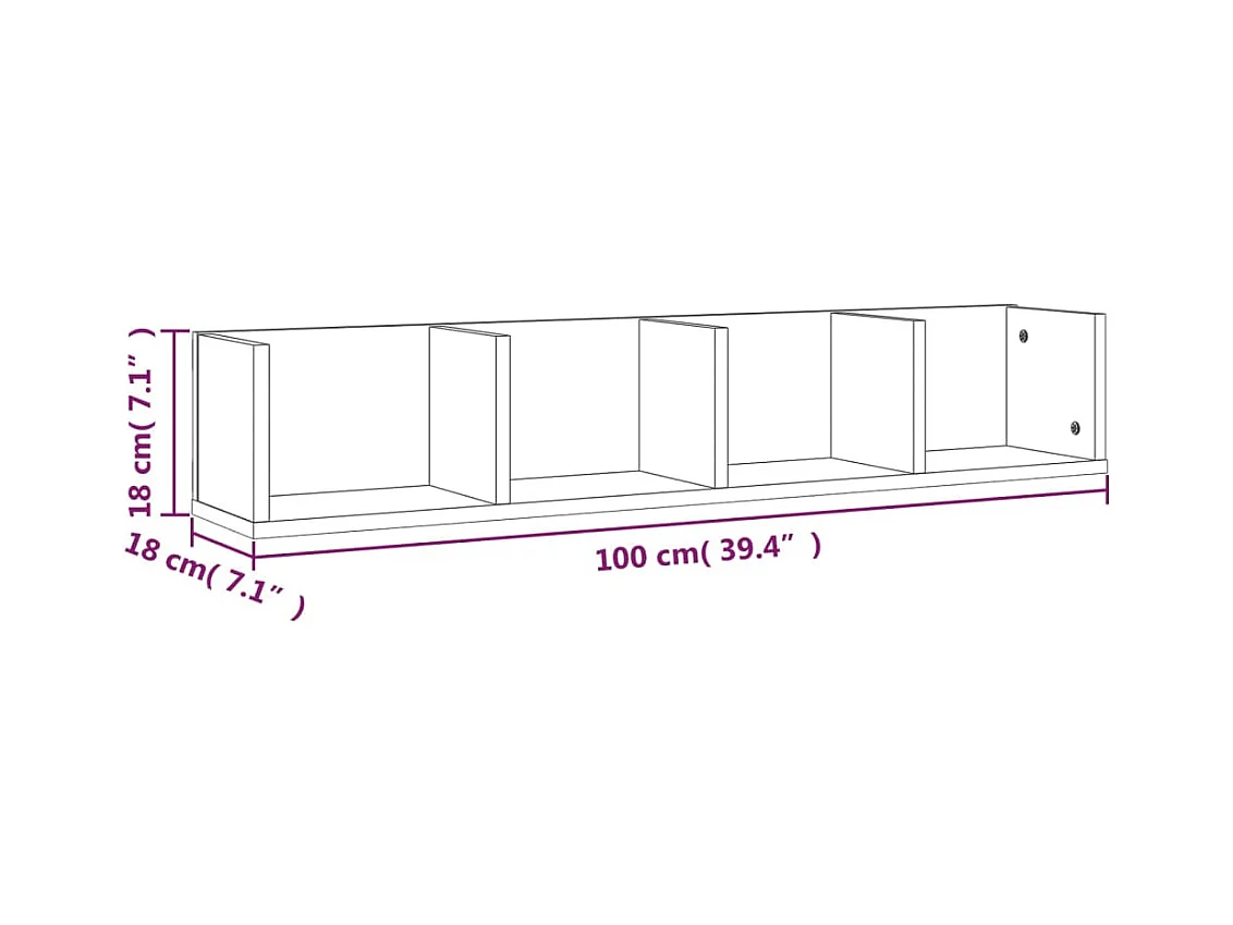 Étagère murale à CD chêne artisanal 100x18x18cm bois ingénierie
