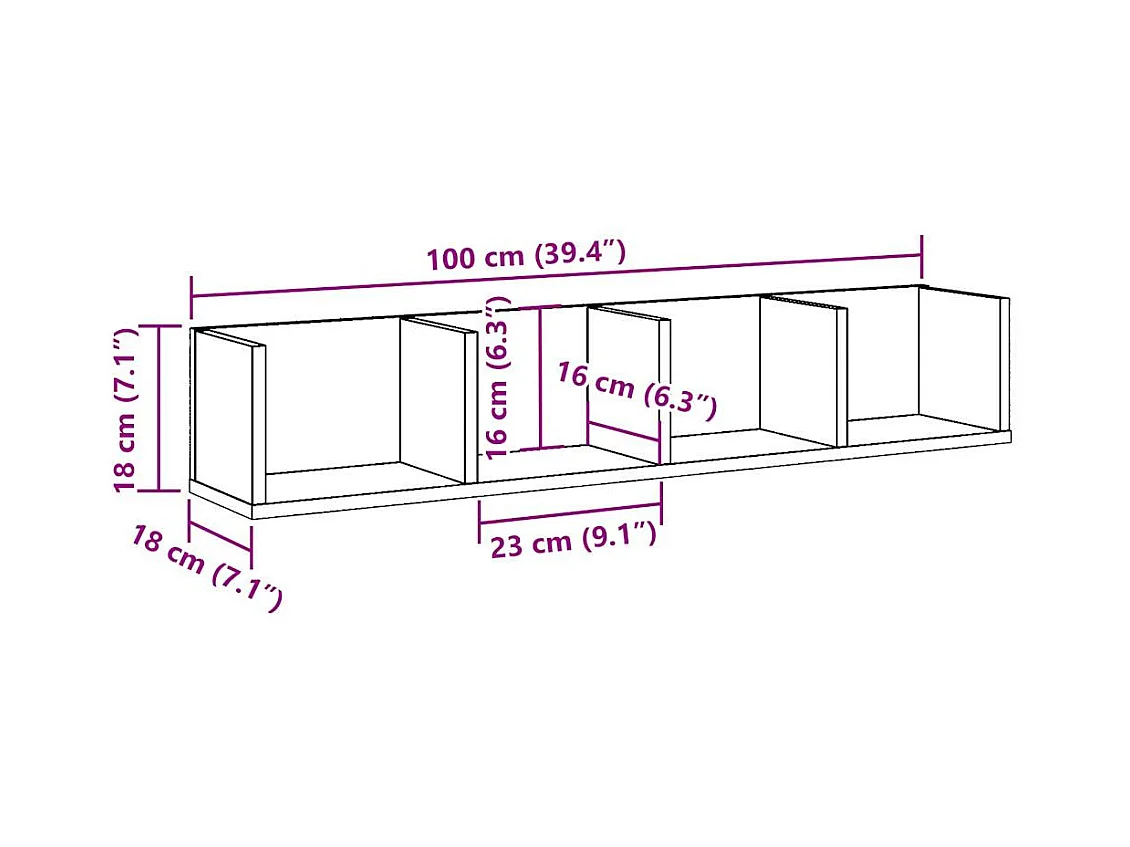 Étagère murale à CD chêne artisanal 100x18x18cm bois ingénierie