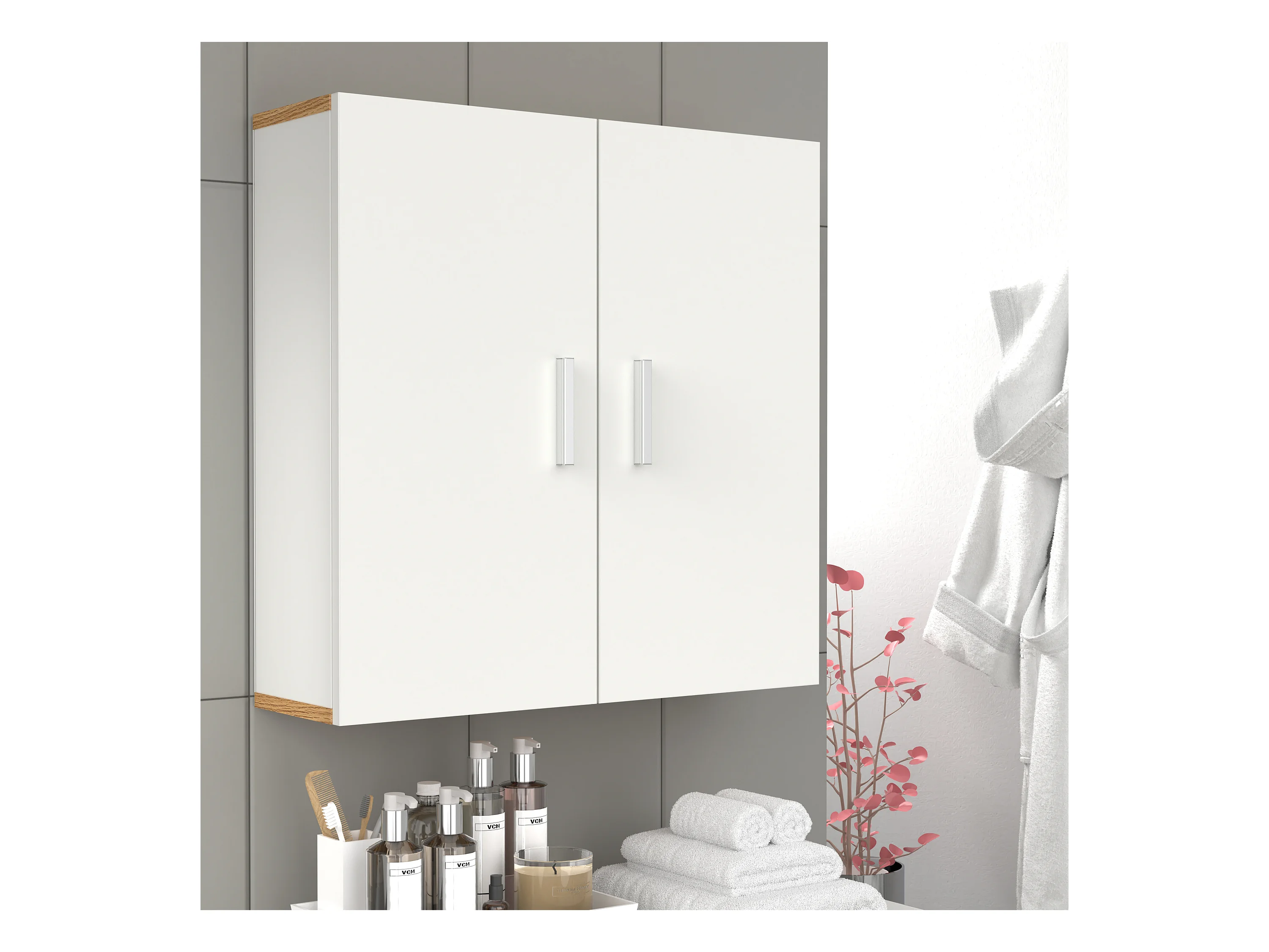 Bathroom furniture wall cabinet Landos White / Honey oak H. 60 x W. 60 x D. 18 cm