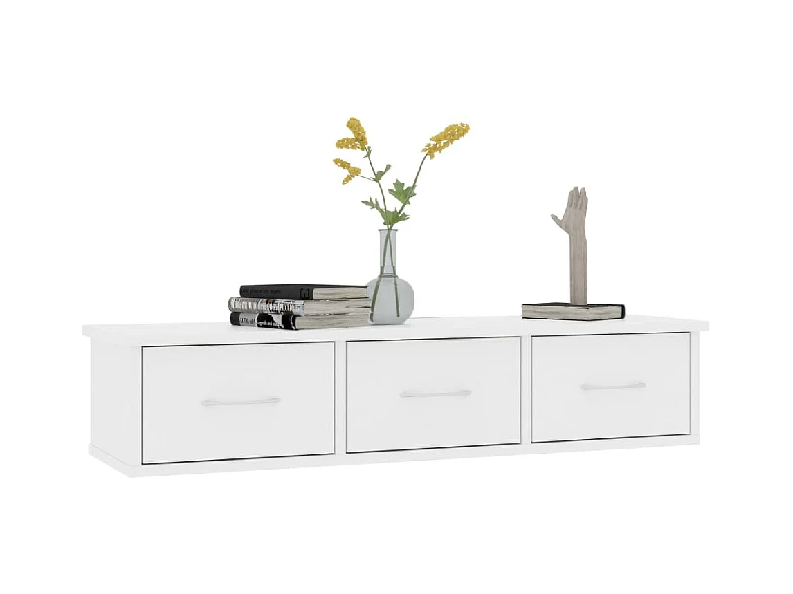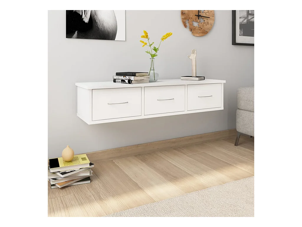 Étagère murale avec tiroirs Blanc 88x26x18,5 cm Aggloméré OFR90839 BonneVie Meuble