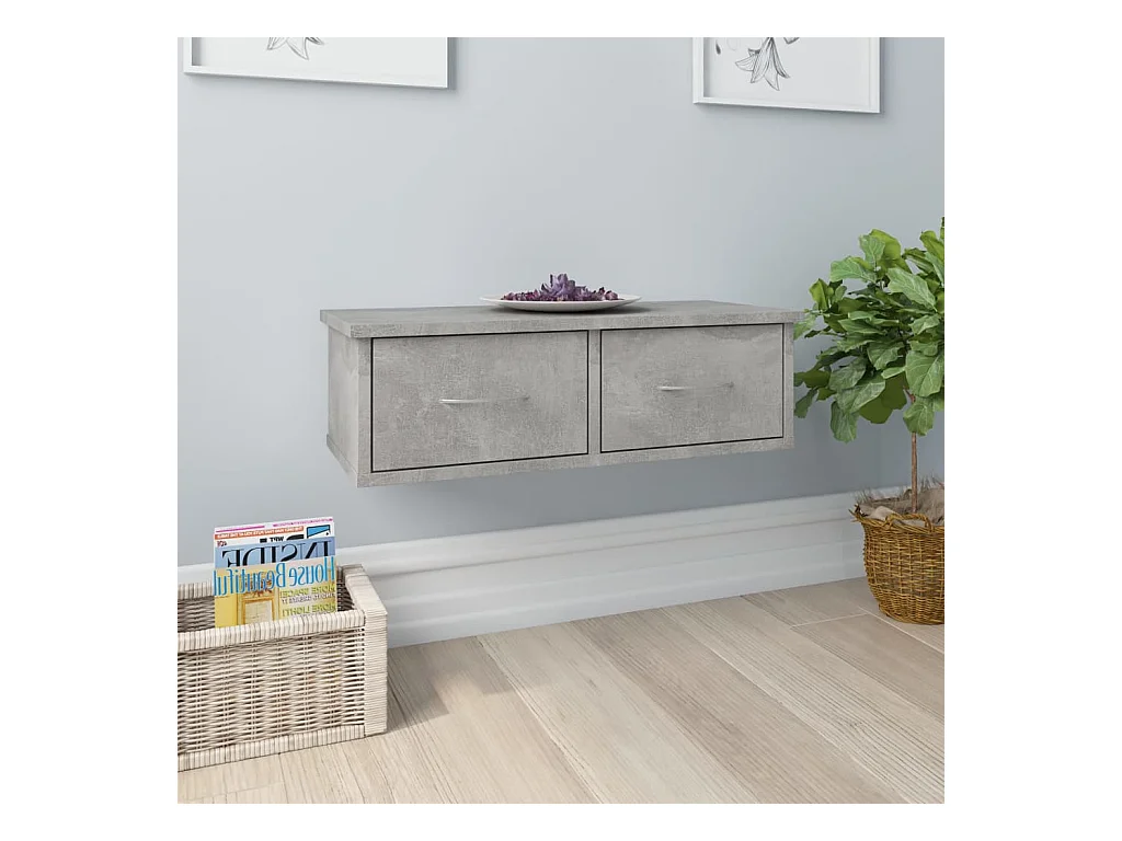 Étagère murale avec tiroirs Gris béton 88x26x18,5 cm Aggloméré OFR60298 BonneVie Meuble