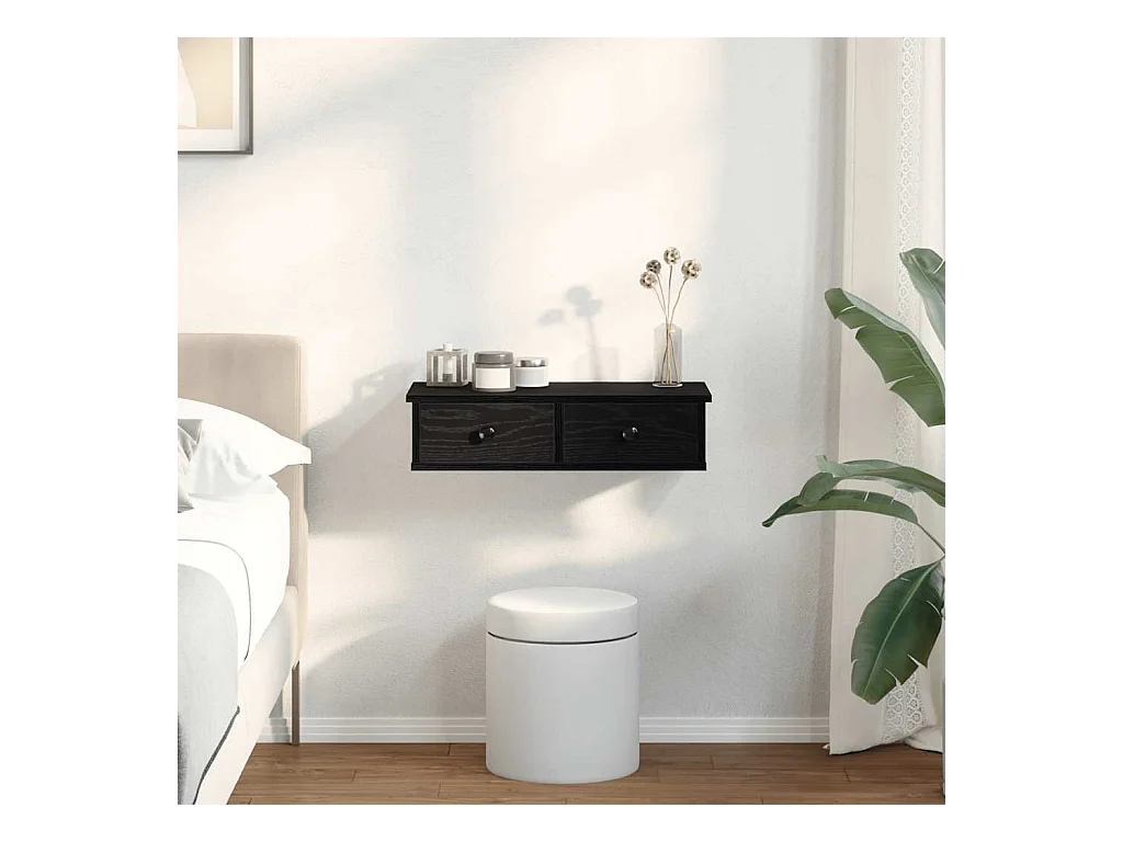 Étagère murale avec tiroirs noir 60x26,5x15cm bois d'ingénierie